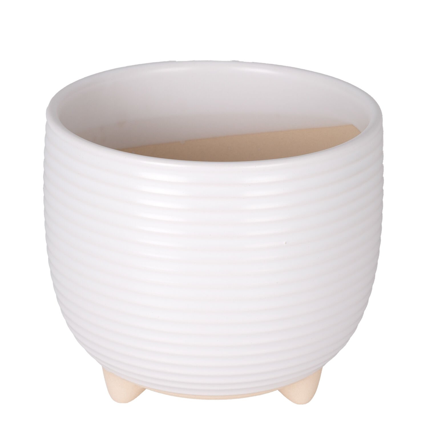 Seramik Saksı Ayaklı Yatay Kabartma Çizgili Beyaz 21x18,5 Cm.