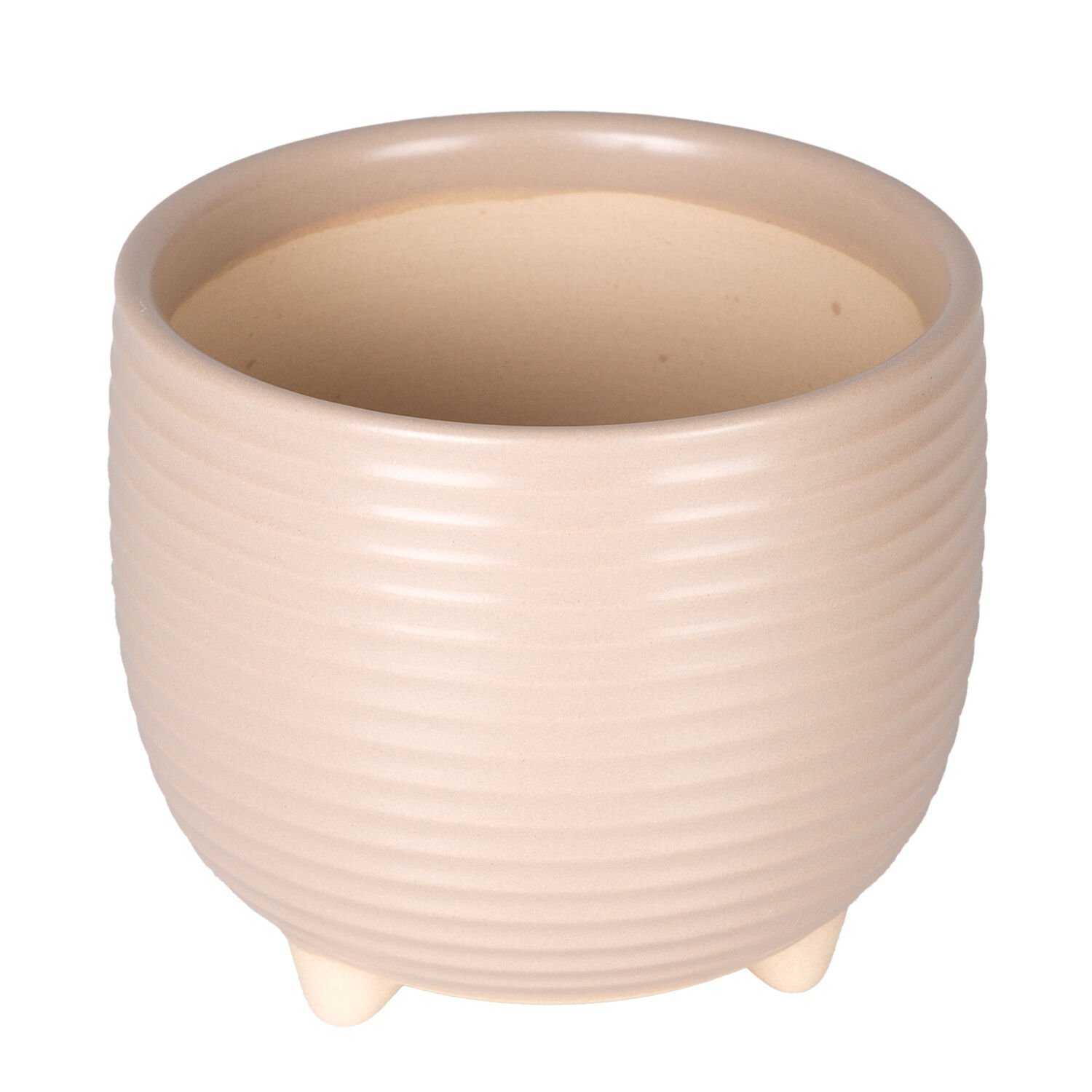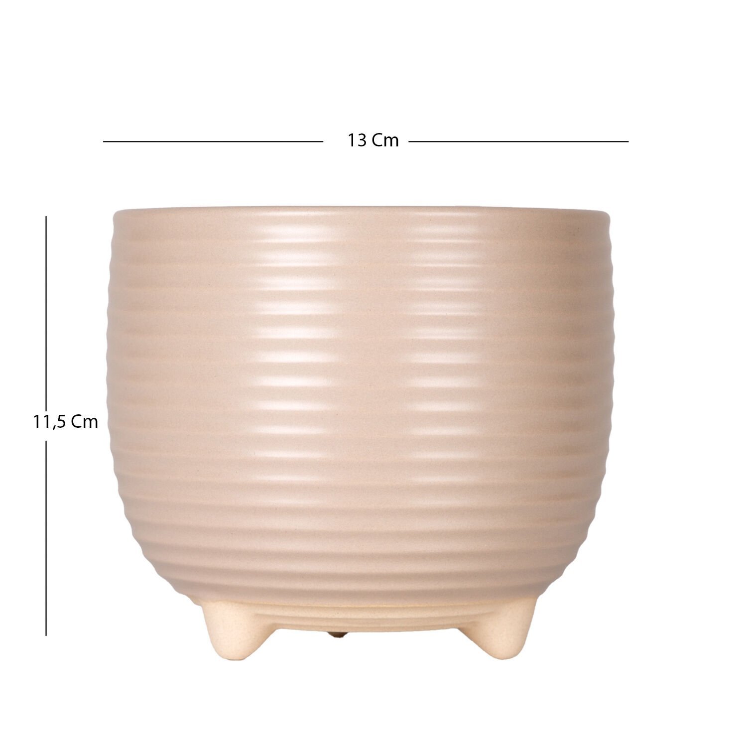 Seramik Saksı Ayaklı Yatay Kabartma Çizgili Krem 13x11,5 Cm.