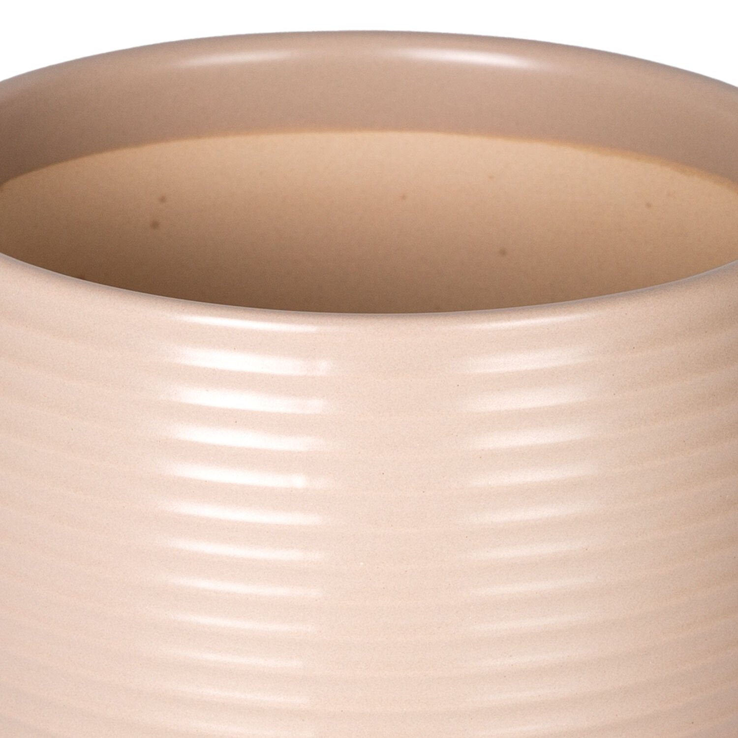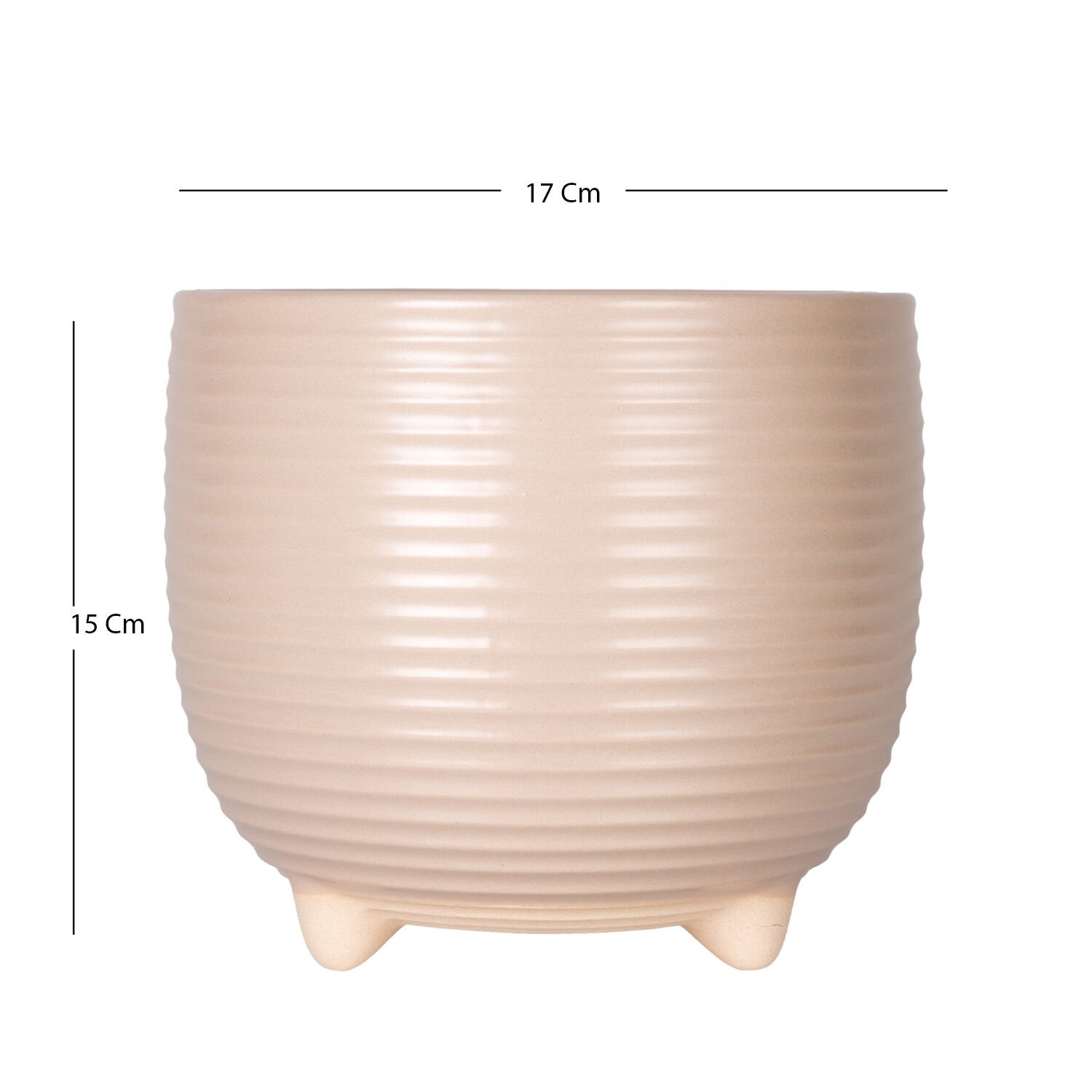Seramik Saksı Ayaklı Yatay Kabartma Çizgili Krem 17x15 Cm.
