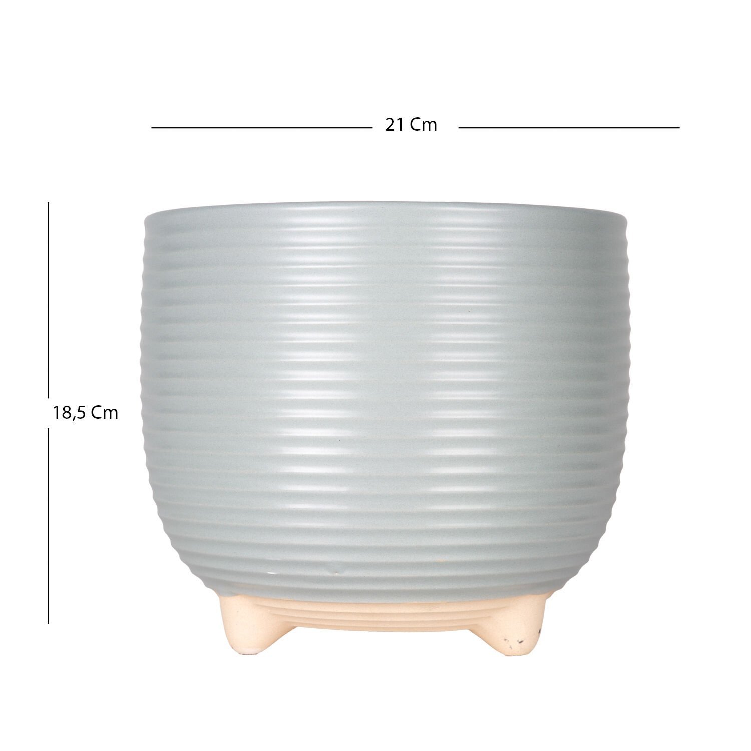 Seramik Saksı Ayaklı Yatay Kabartma Çizgili Pudra Mavi 21x18,5 Cm.