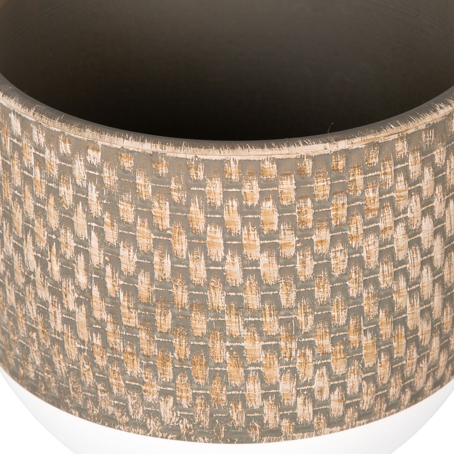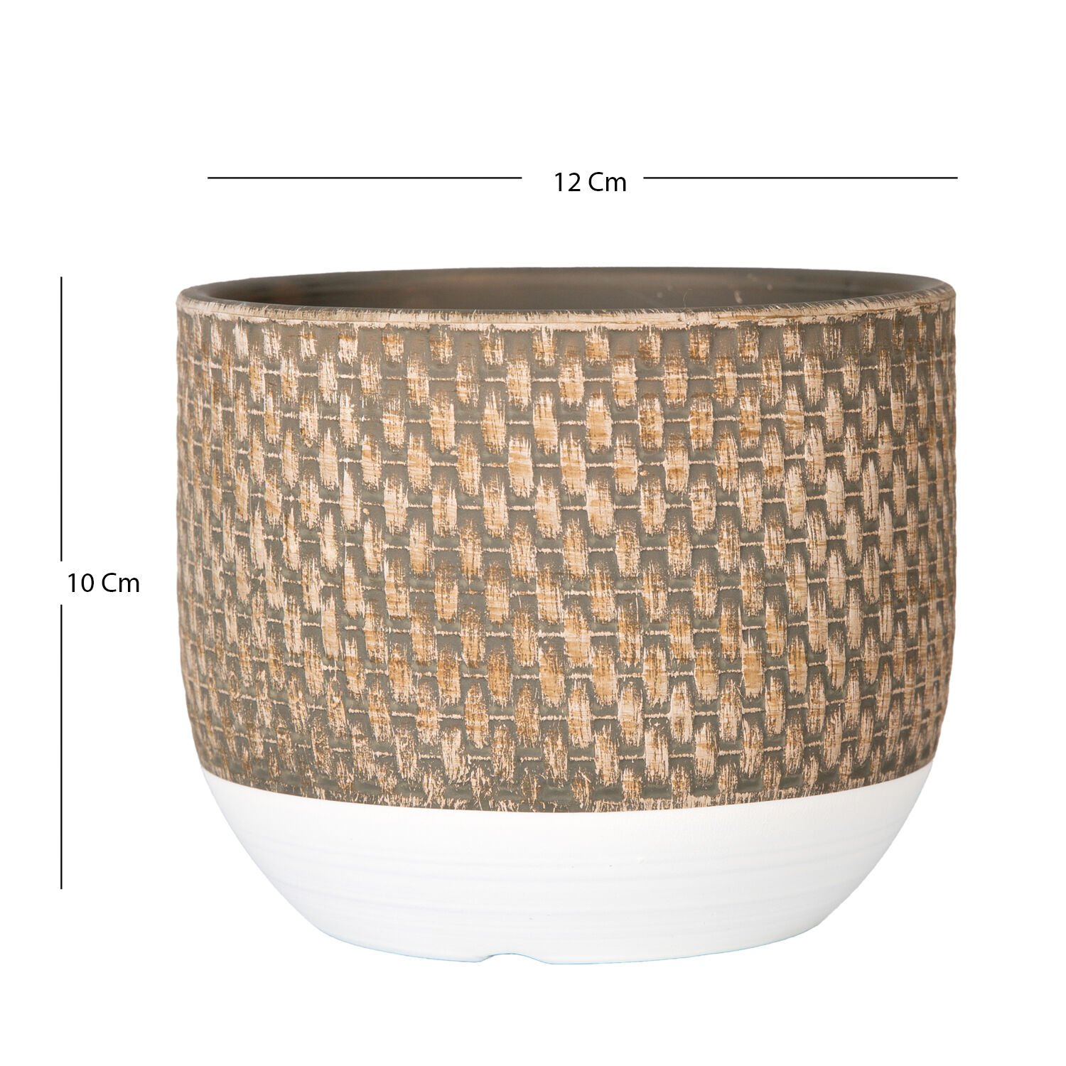 Seramik Saksı, Desenli, Gri-Beyaz - 12x10 cm