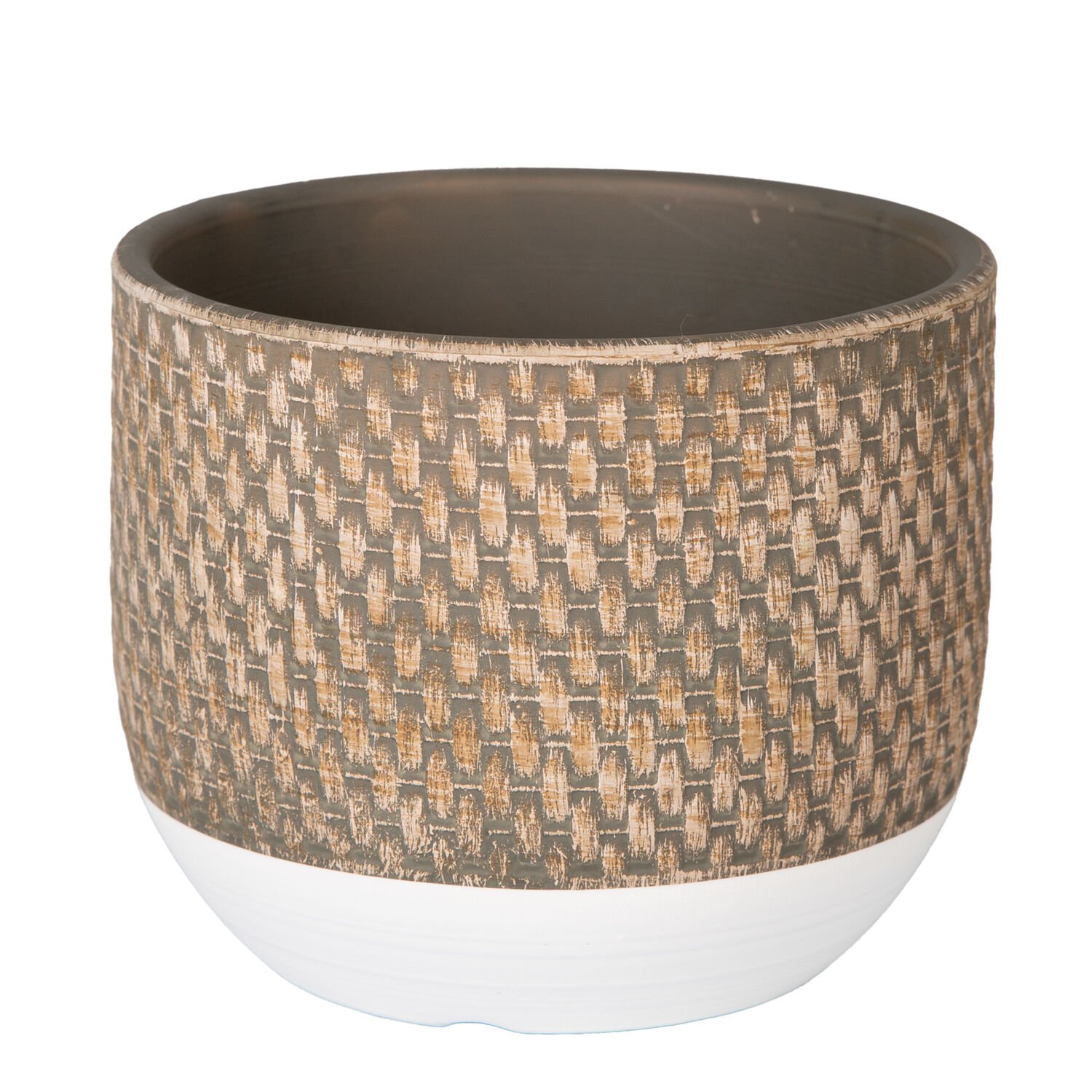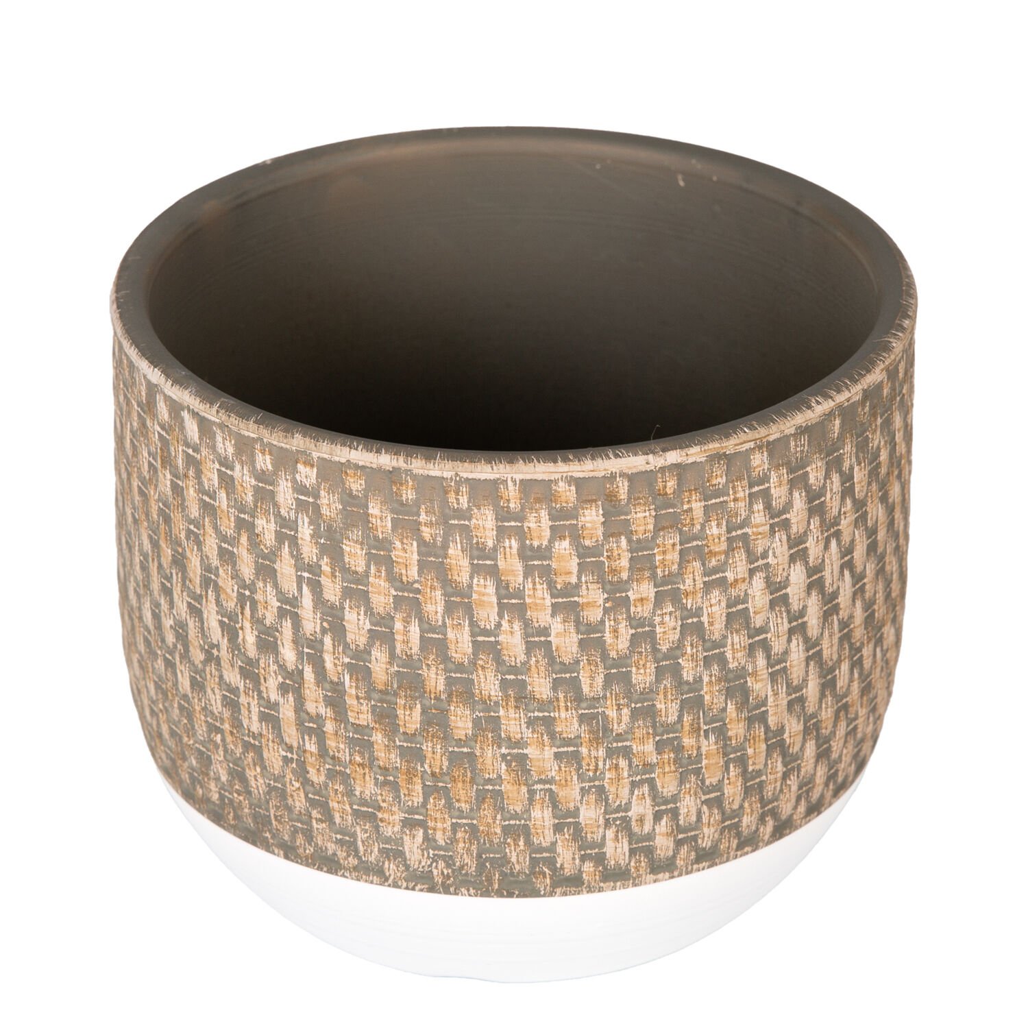 Seramik Saksı Desenli Gri-Beyaz 12x10 Cm.