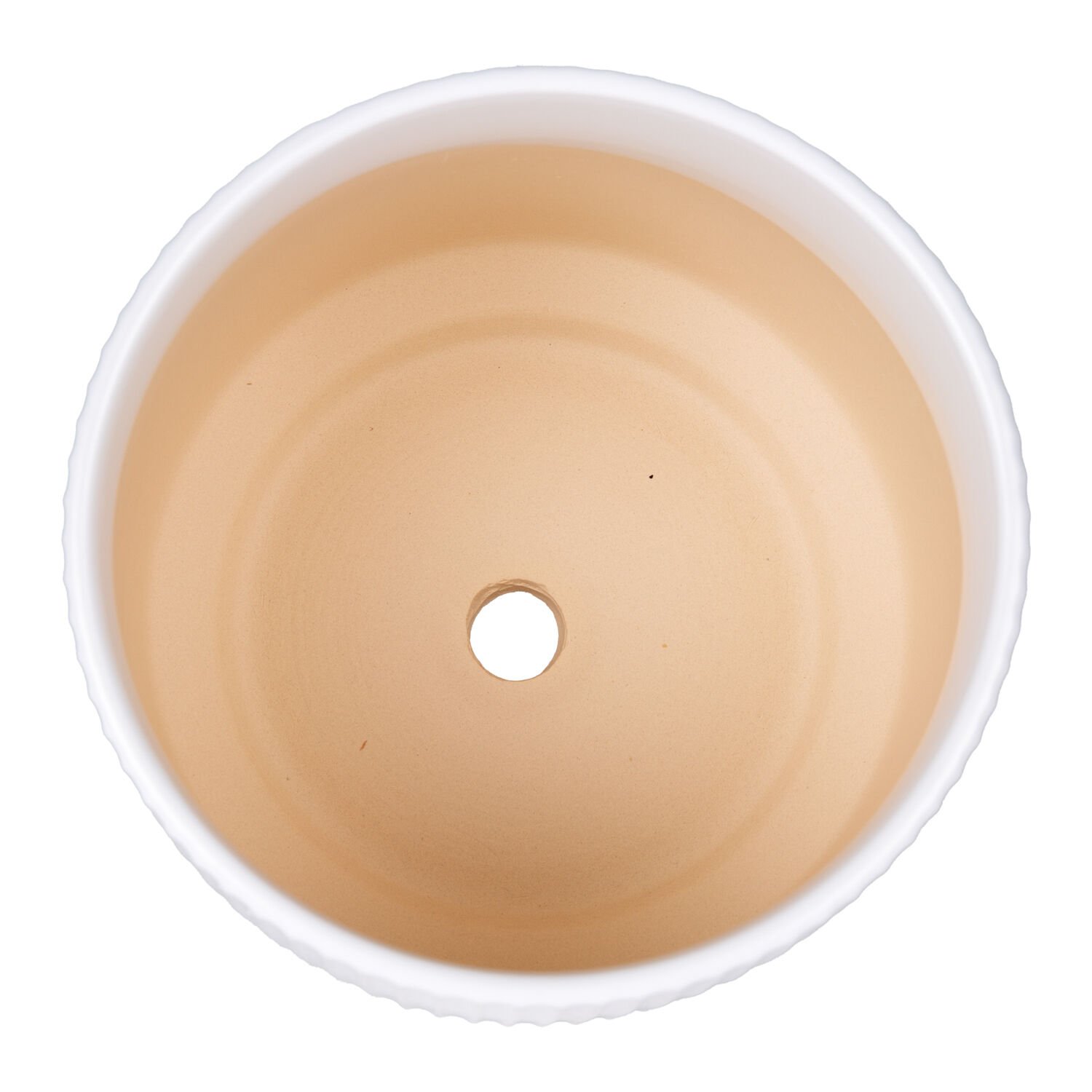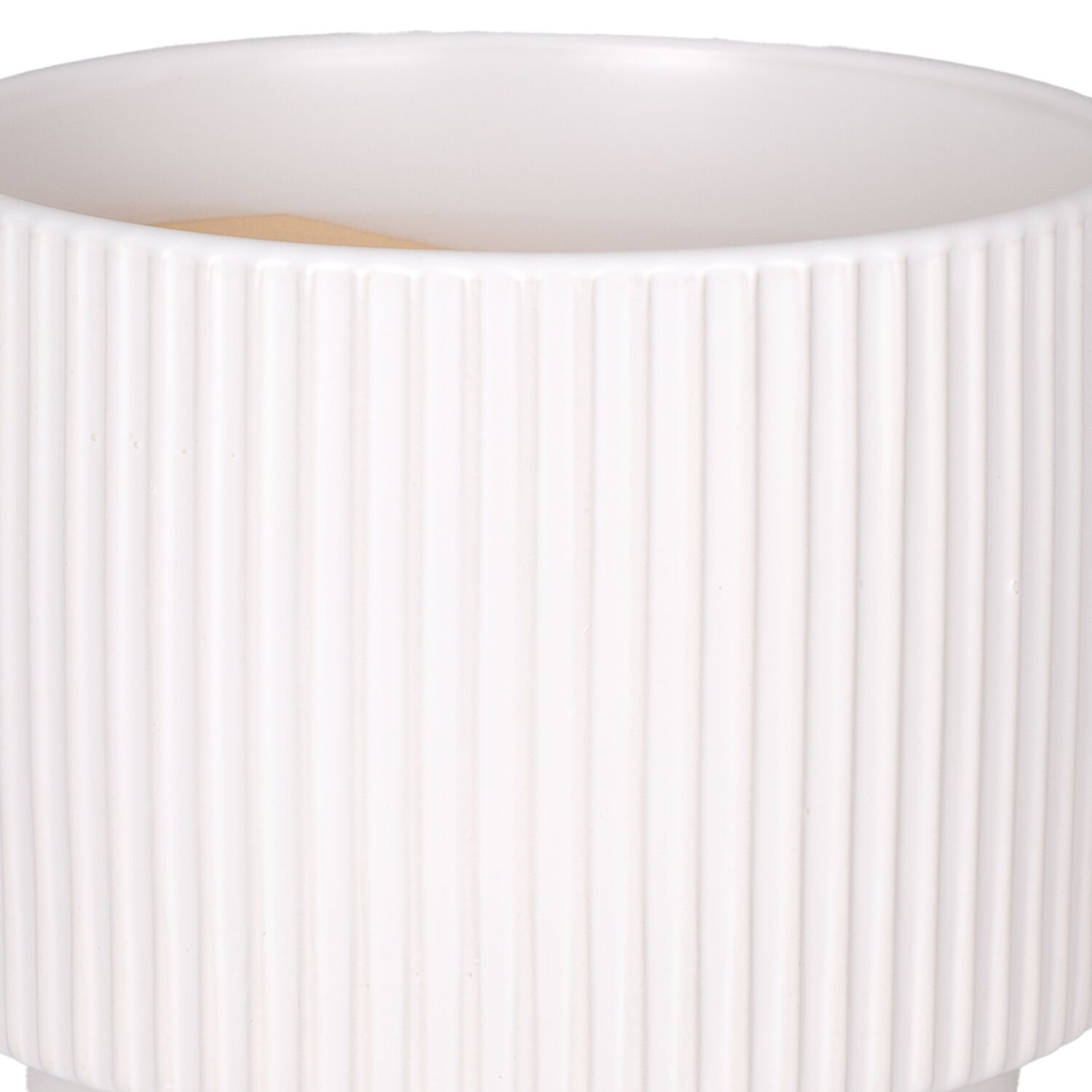 Seramik Saksı, Dikey Kabartma Çizgili, Beyaz - 16x13 cm