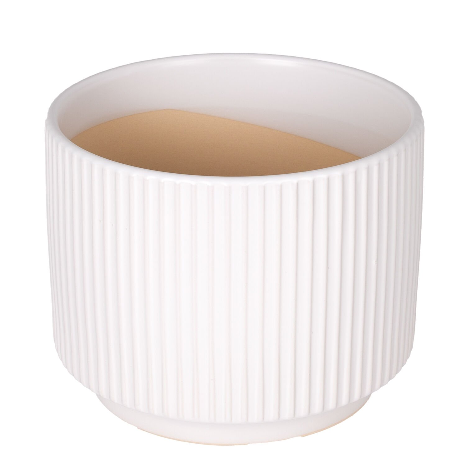 Seramik Saksı Dikey Kabartma Çizgili Beyaz 16x13 Cm.