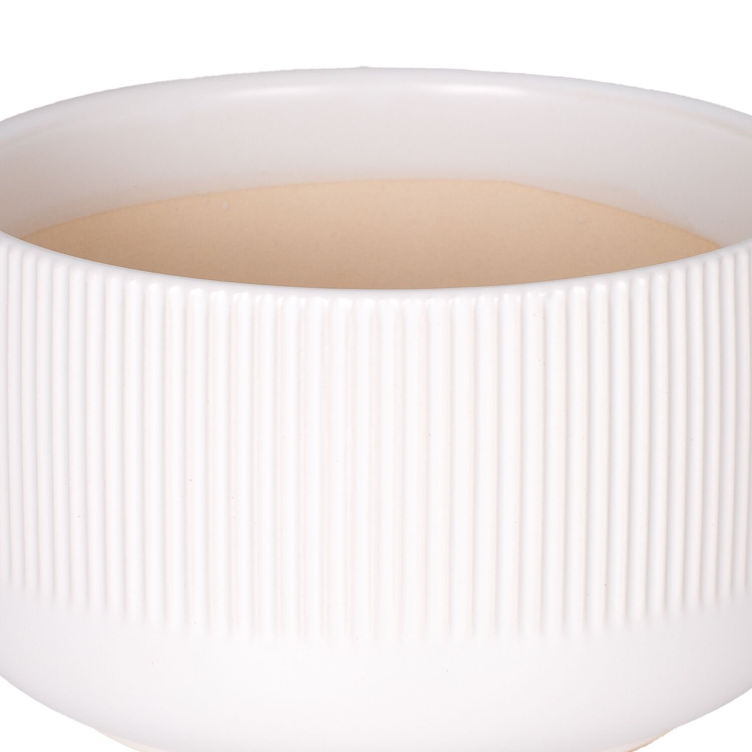 Seramik Saksı, Dikey Kabartma Çizgili, Beyaz - 17x10 cm