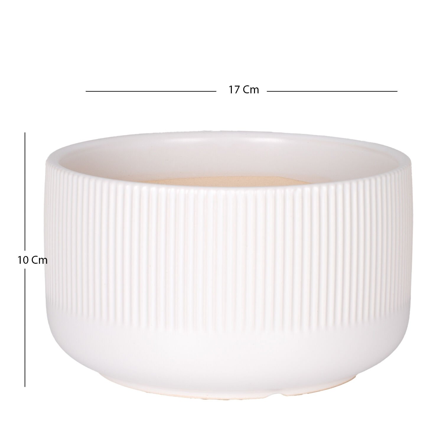 Seramik Saksı Dikey Kabartma Çizgili Beyaz 17x10 Cm.