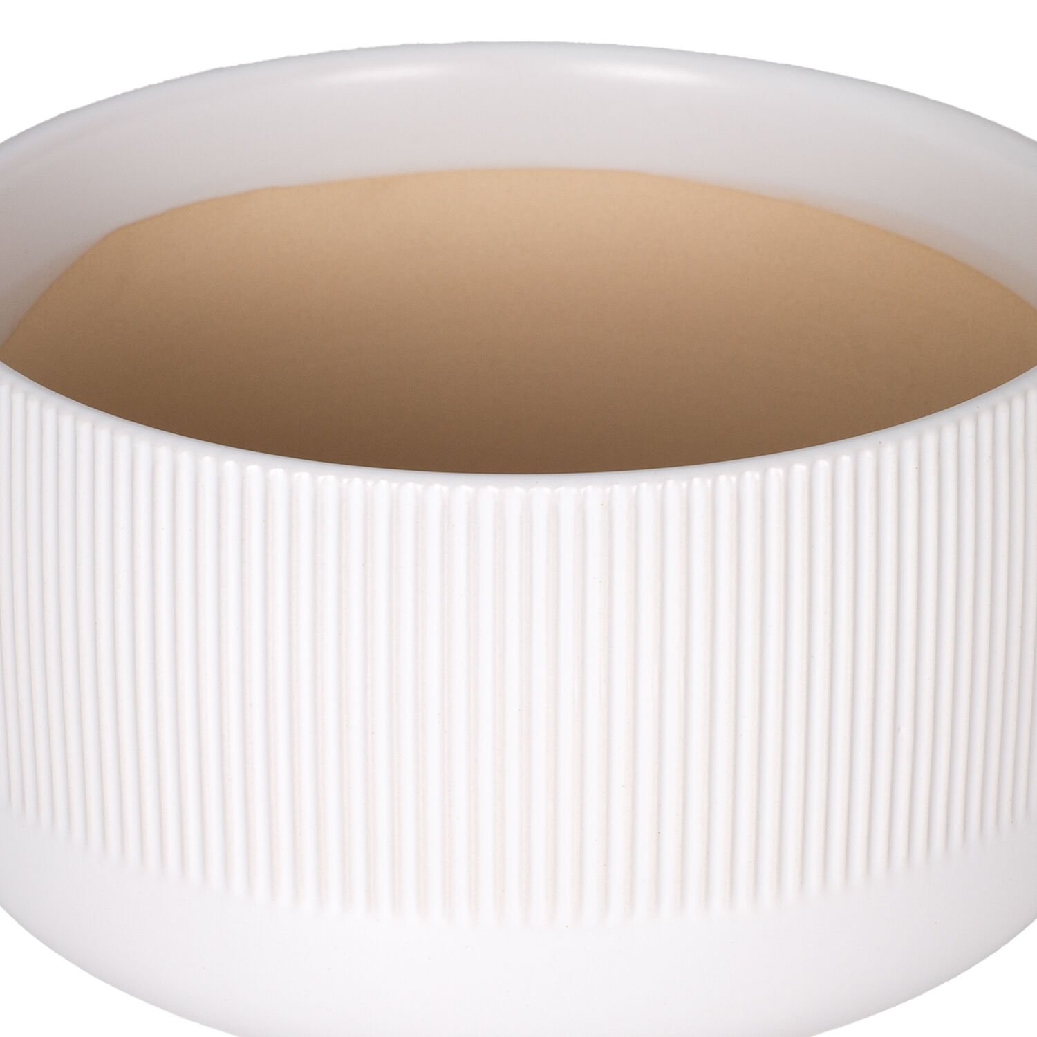 Seramik Saksı, Dikey Kabartma Çizgili, Beyaz - 21x12 cm