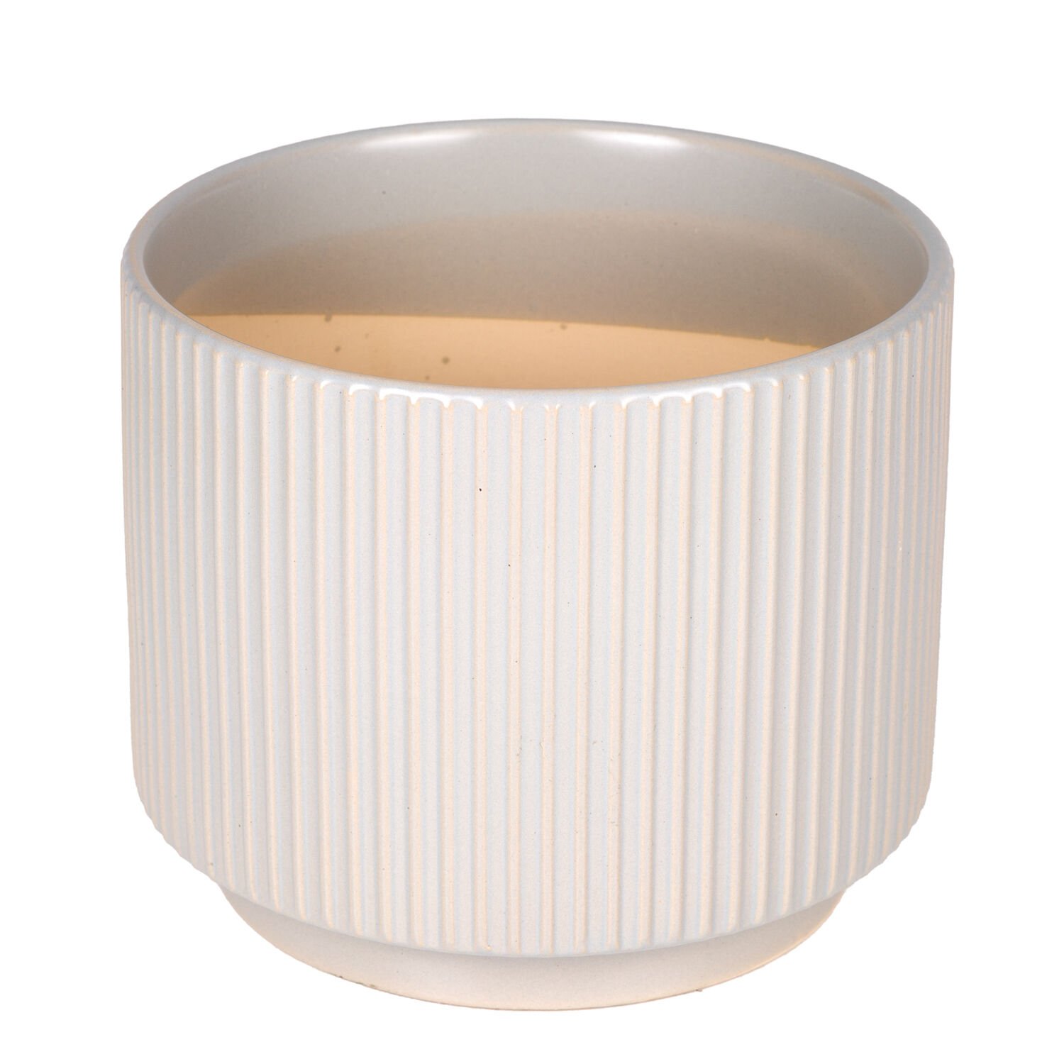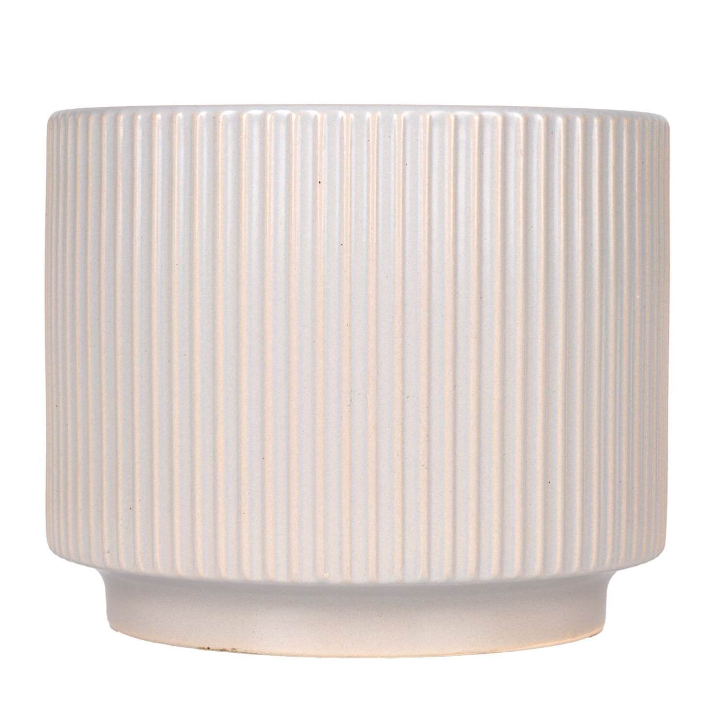 Seramik Saksı, Dikey Kabartma Çizgili, Gri - 23x18,5 cm
