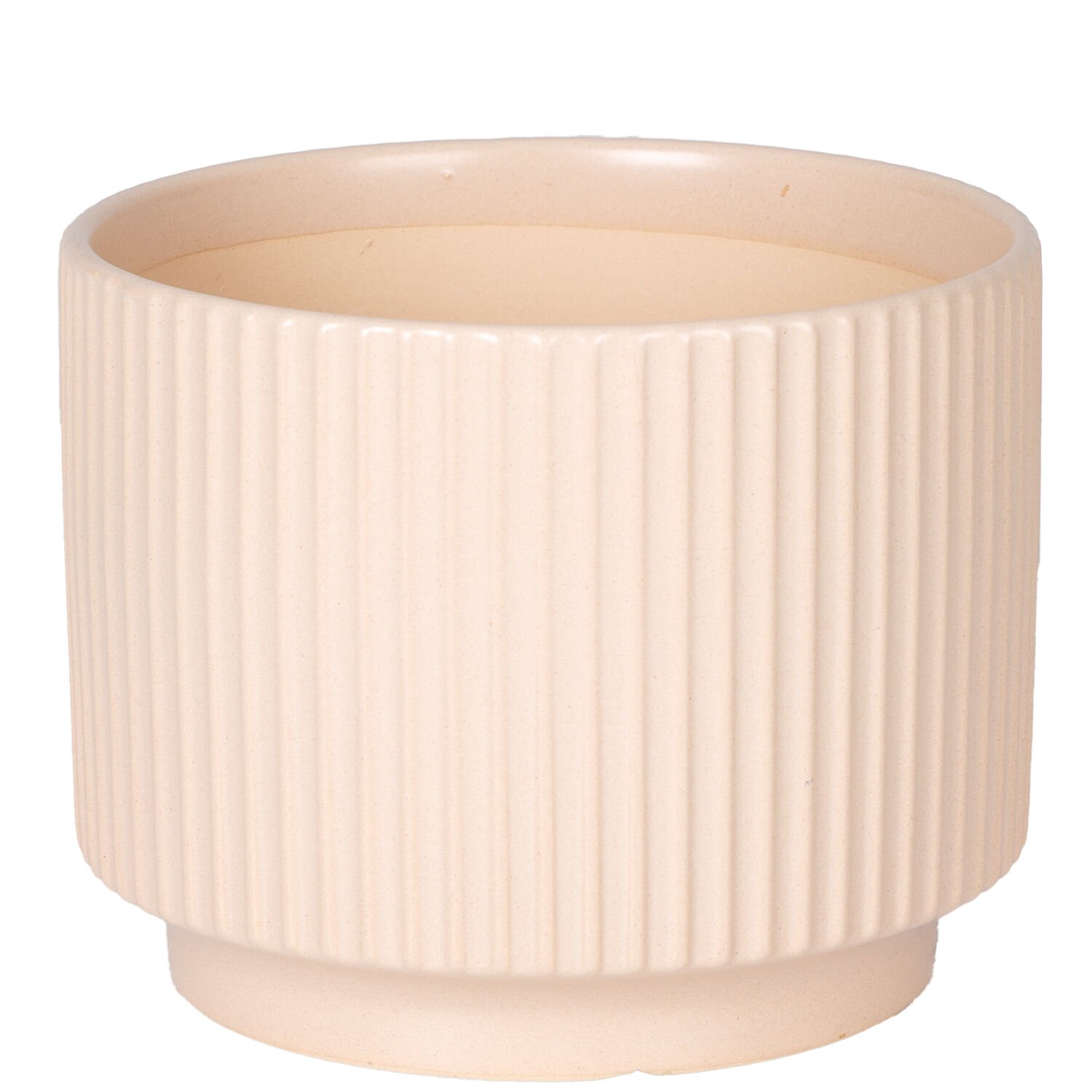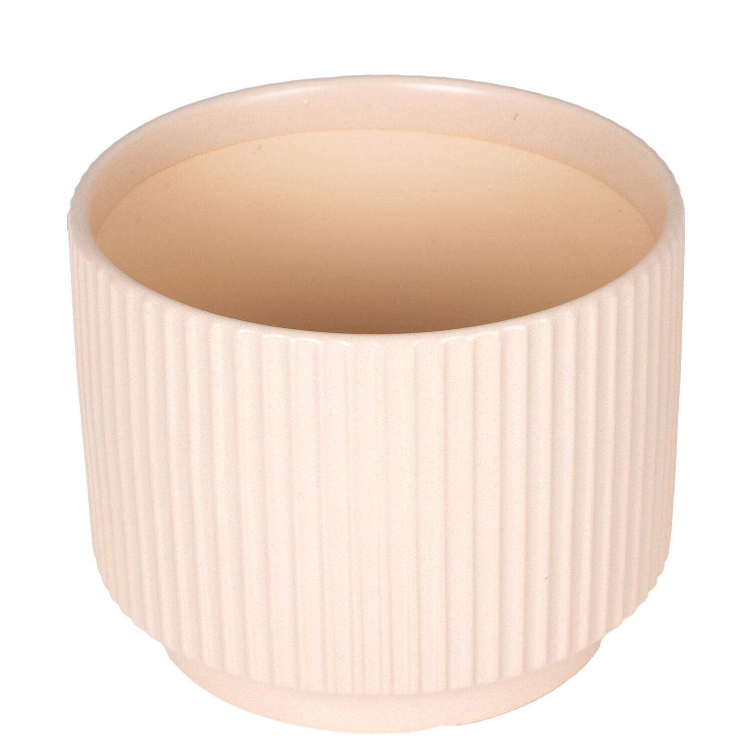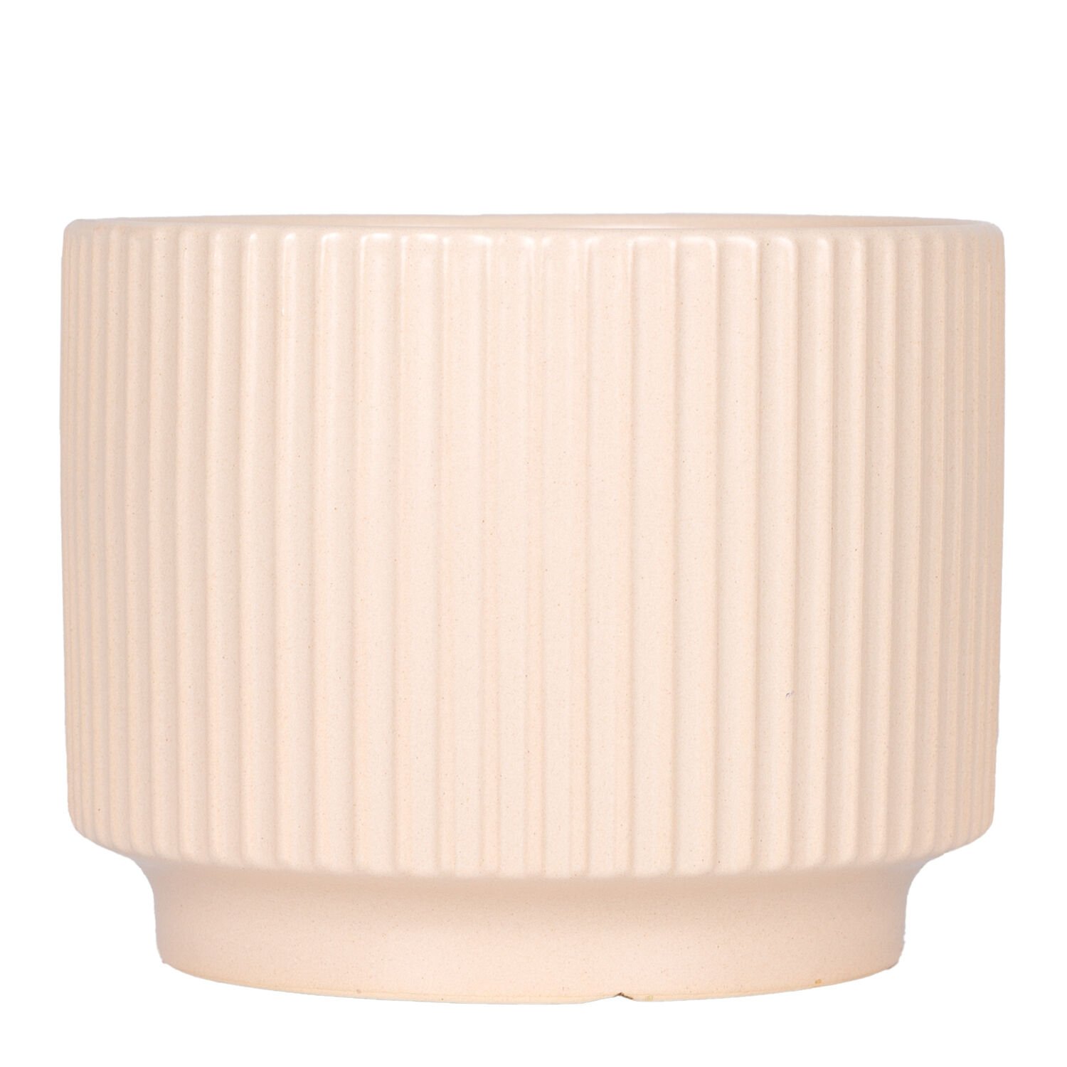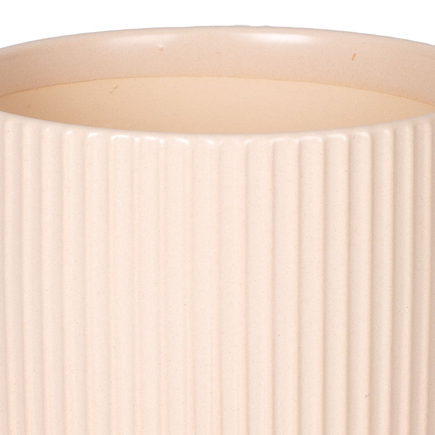 Seramik Saksı, Dikey Kabartma Çizgili, Krem - 16x13 cm