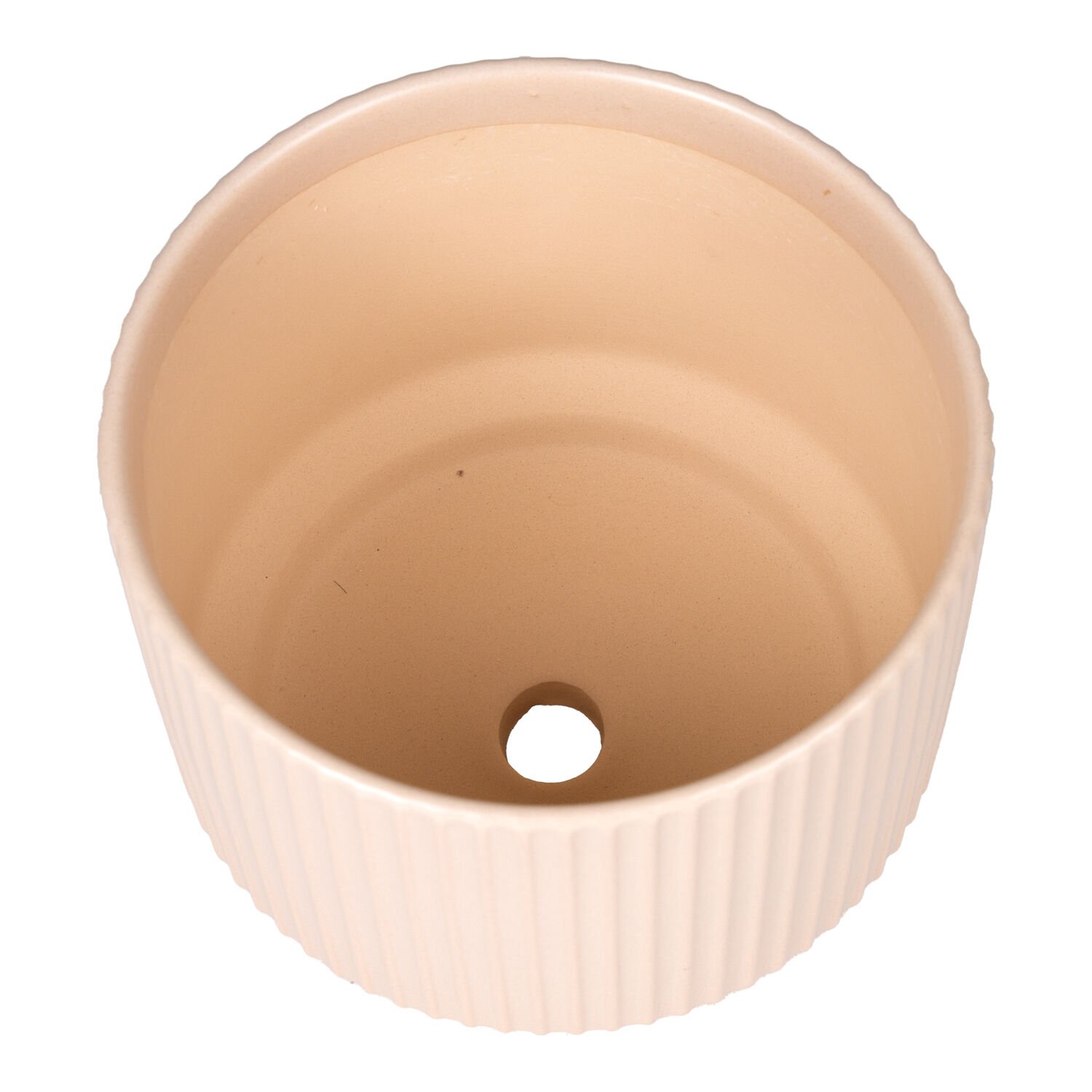 Seramik Saksı Dikey Kabartma Çizgili Krem 16x13 Cm.