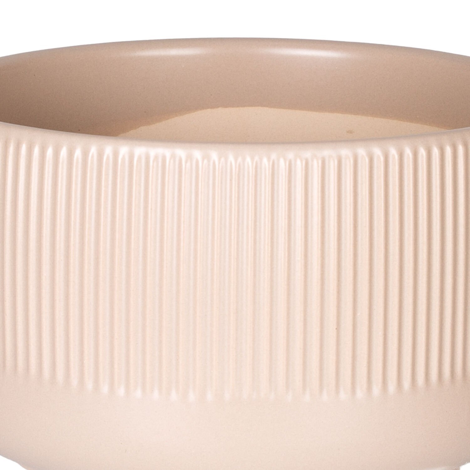 Seramik Saksı, Dikey Kabartma Çizgili, Krem - 21x12 cm