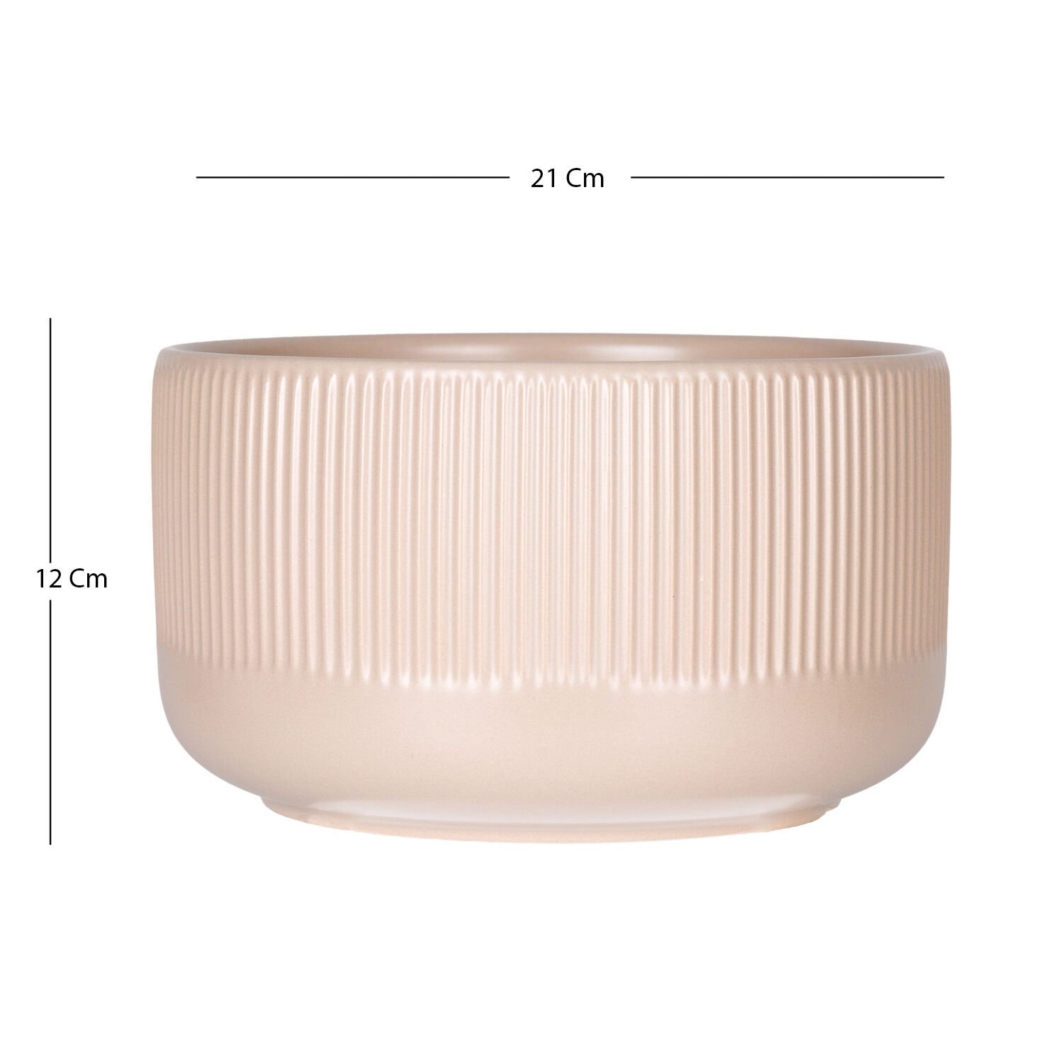 Seramik Saksı Dikey Kabartma Çizgili Krem 21x12 Cm.