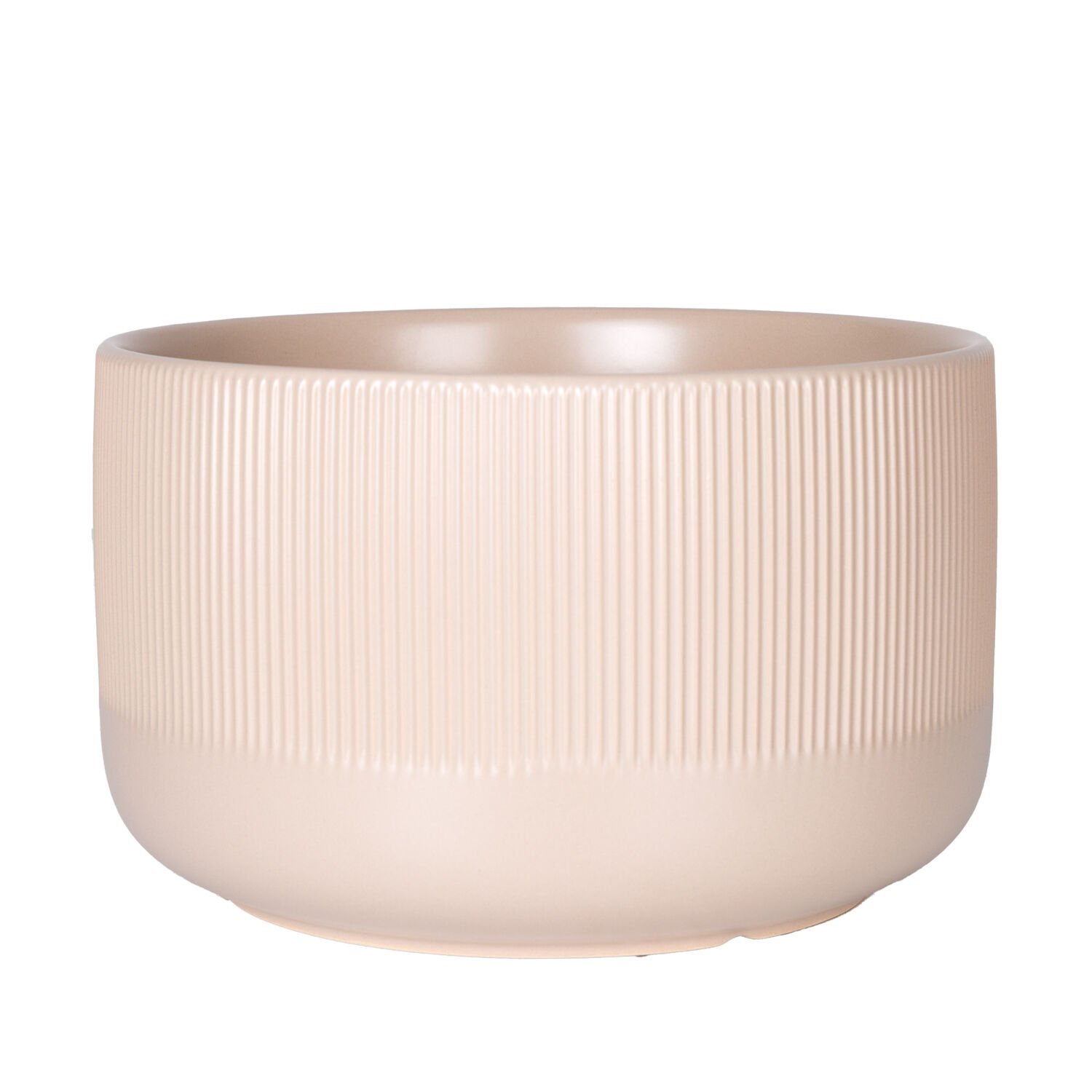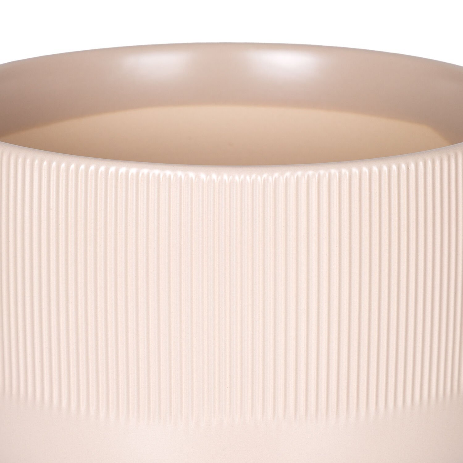 Seramik Saksı Dikey Kabartma Çizgili Krem 25x15,5 Cm.
