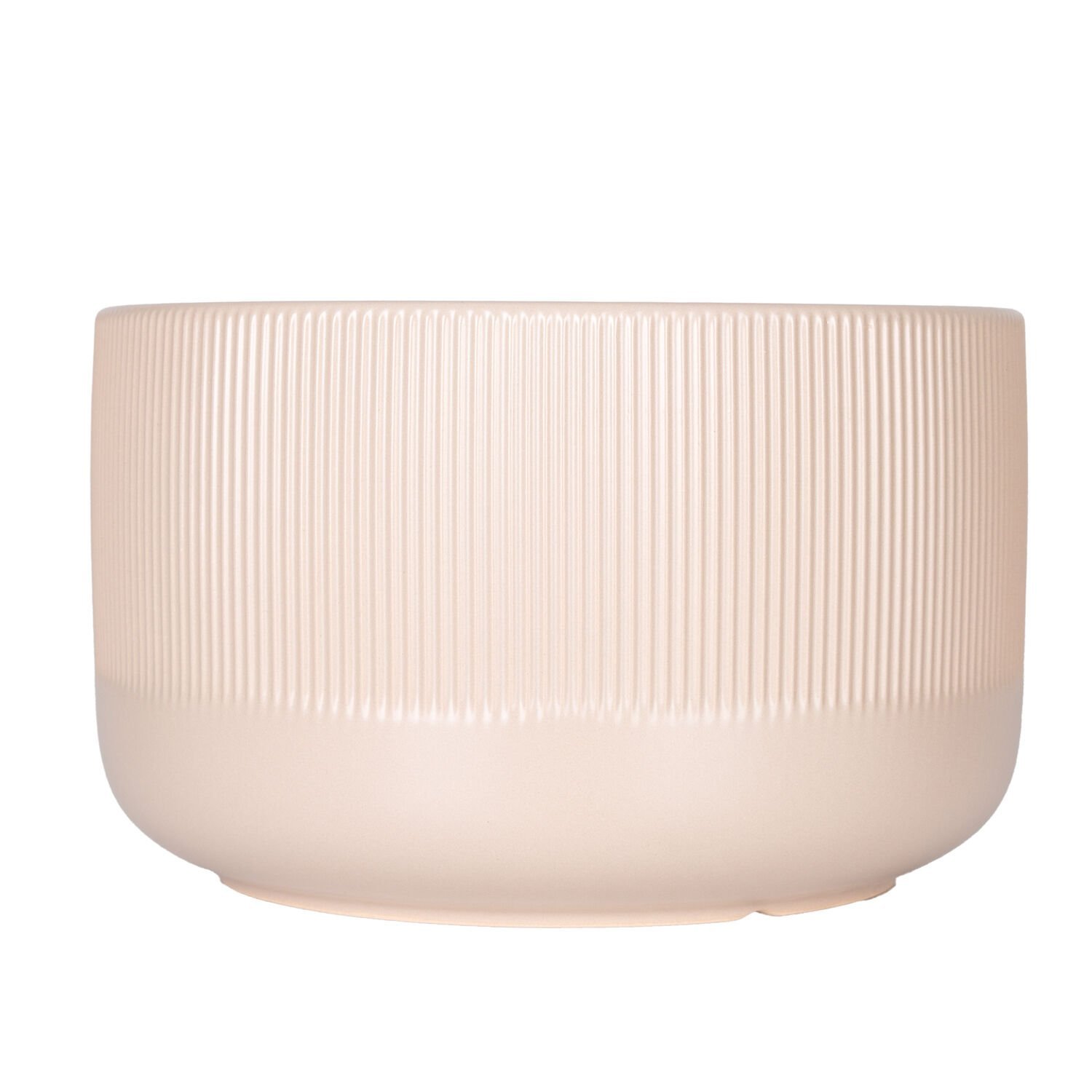 Seramik Saksı, Dikey Kabartma Çizgili, Krem - 25x15,5 cm