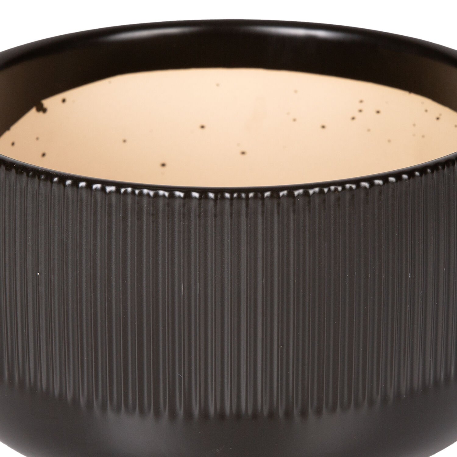 Seramik Saksı, Dikey Kabartma Çizgili, Siyah - 17x10 cm