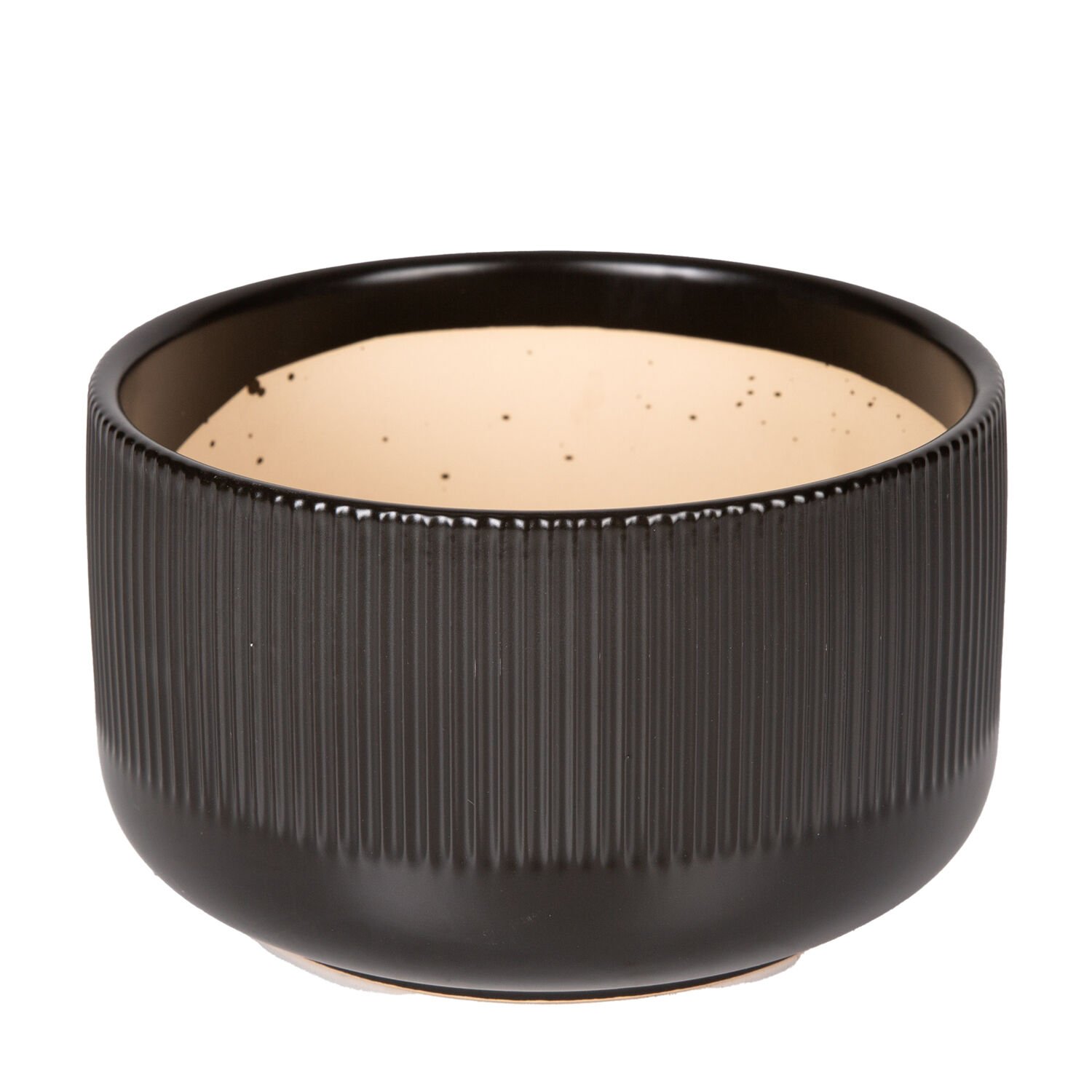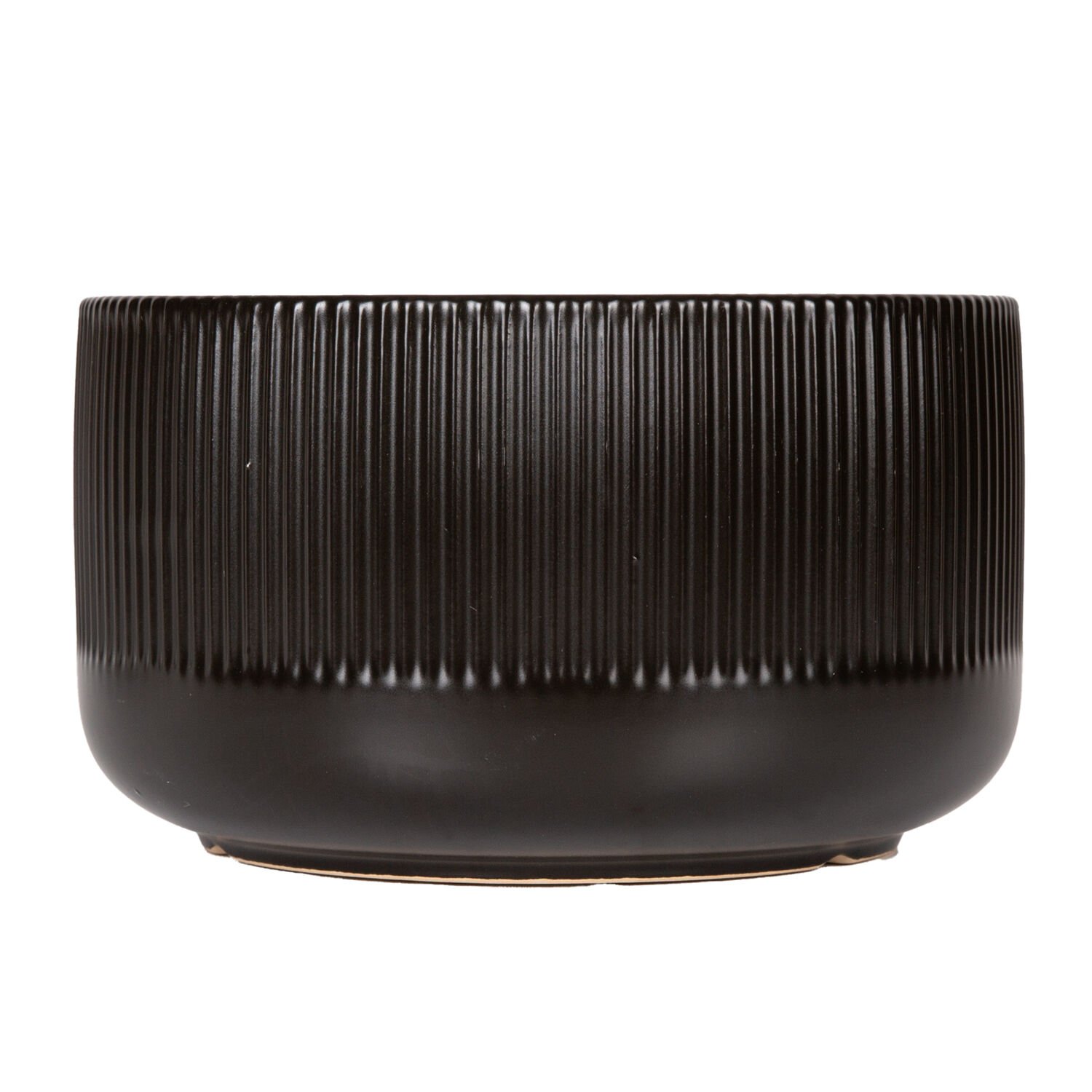 Seramik Saksı Dikey Kabartma Çizgili Siyah 17x10 Cm.