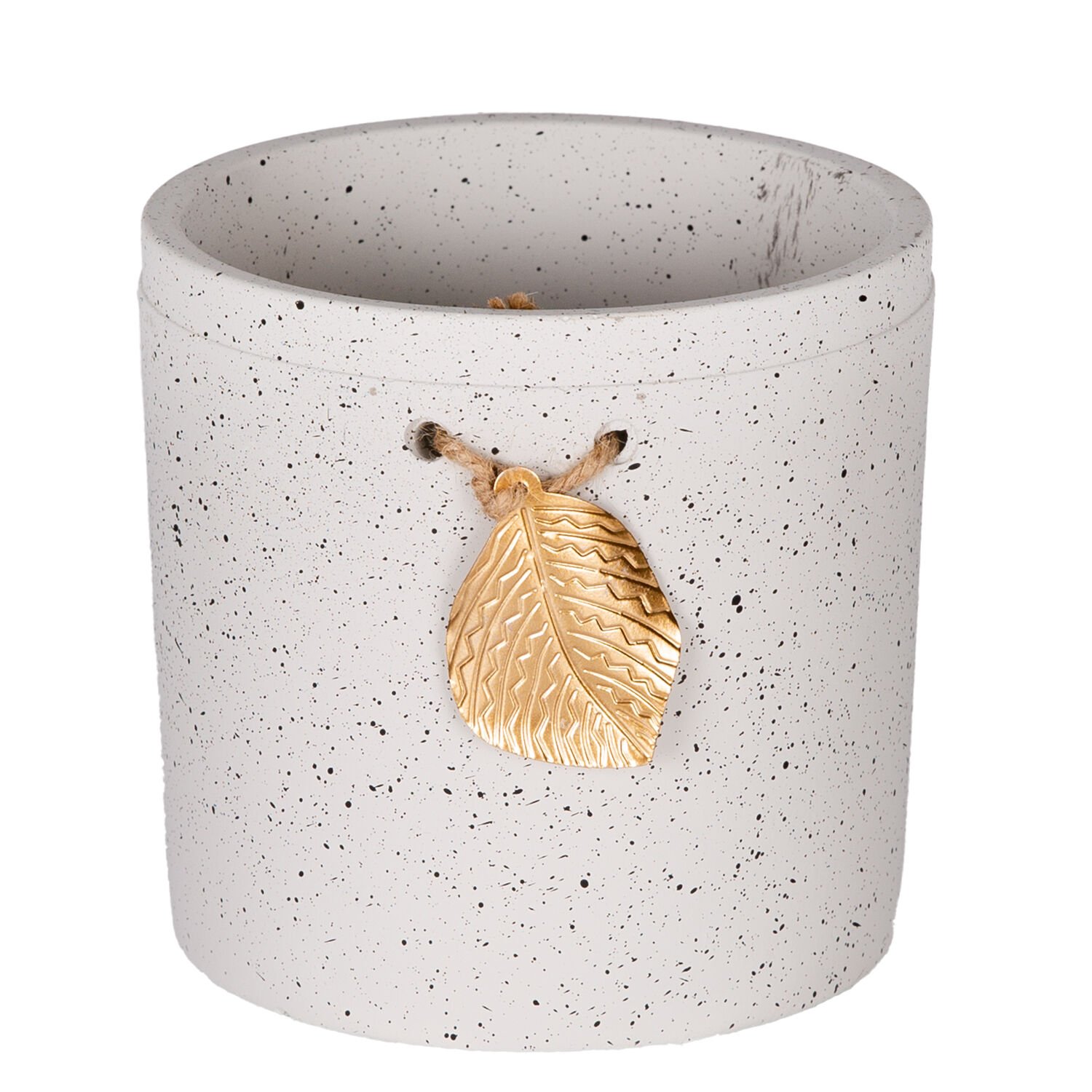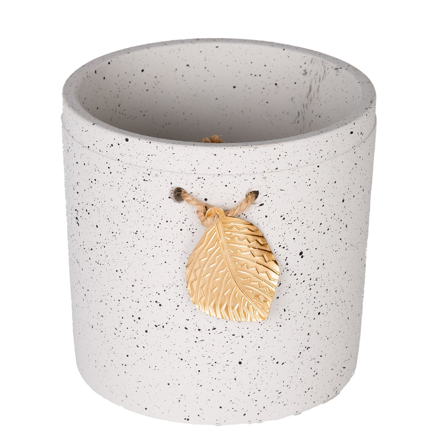 Seramik Saksı, Gold Yaprak Aksesuarlı, Beyaz - 13,5x13 cm