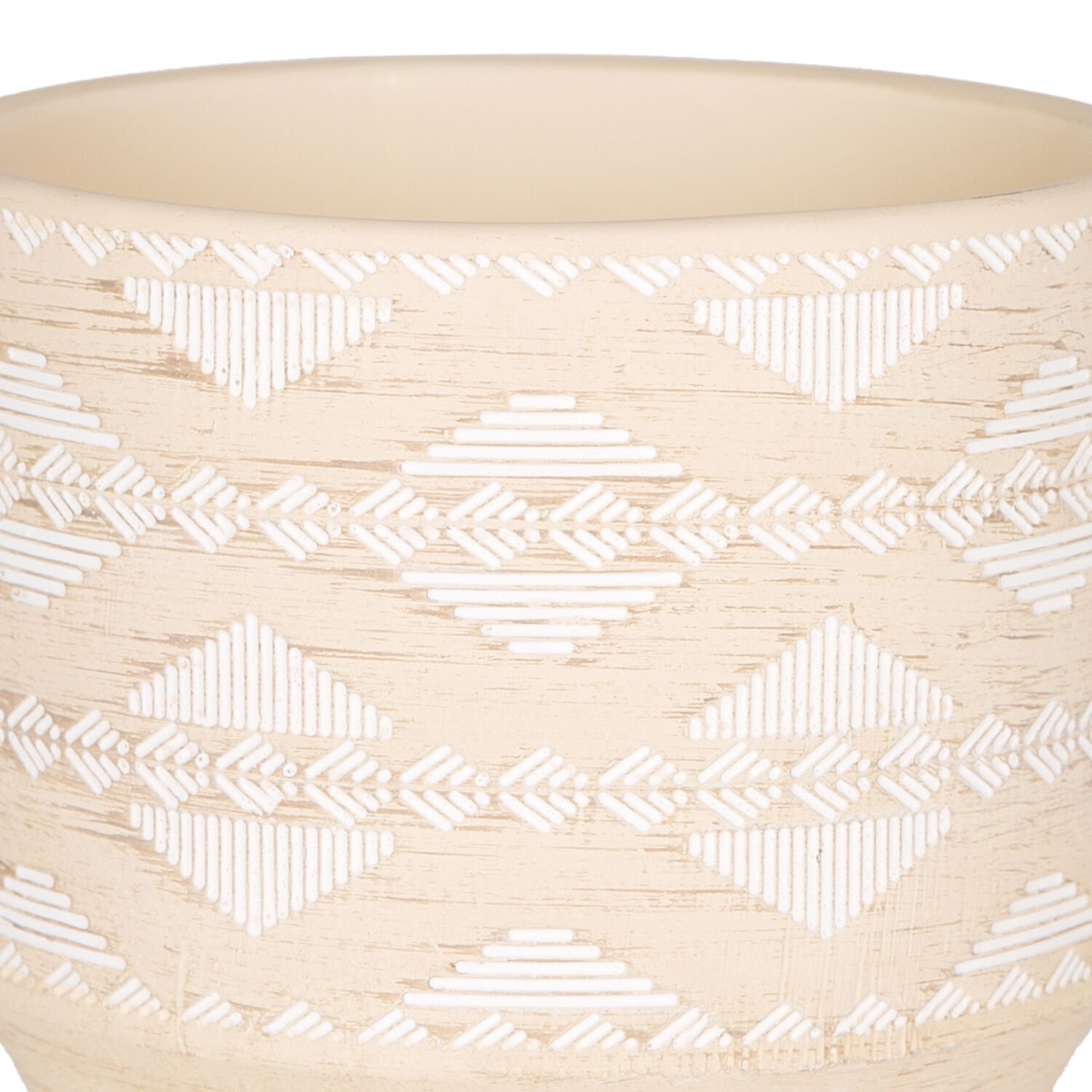 Seramik Saksı, Otantik Desenli, Bej-Beyaz - 12x10 cm
