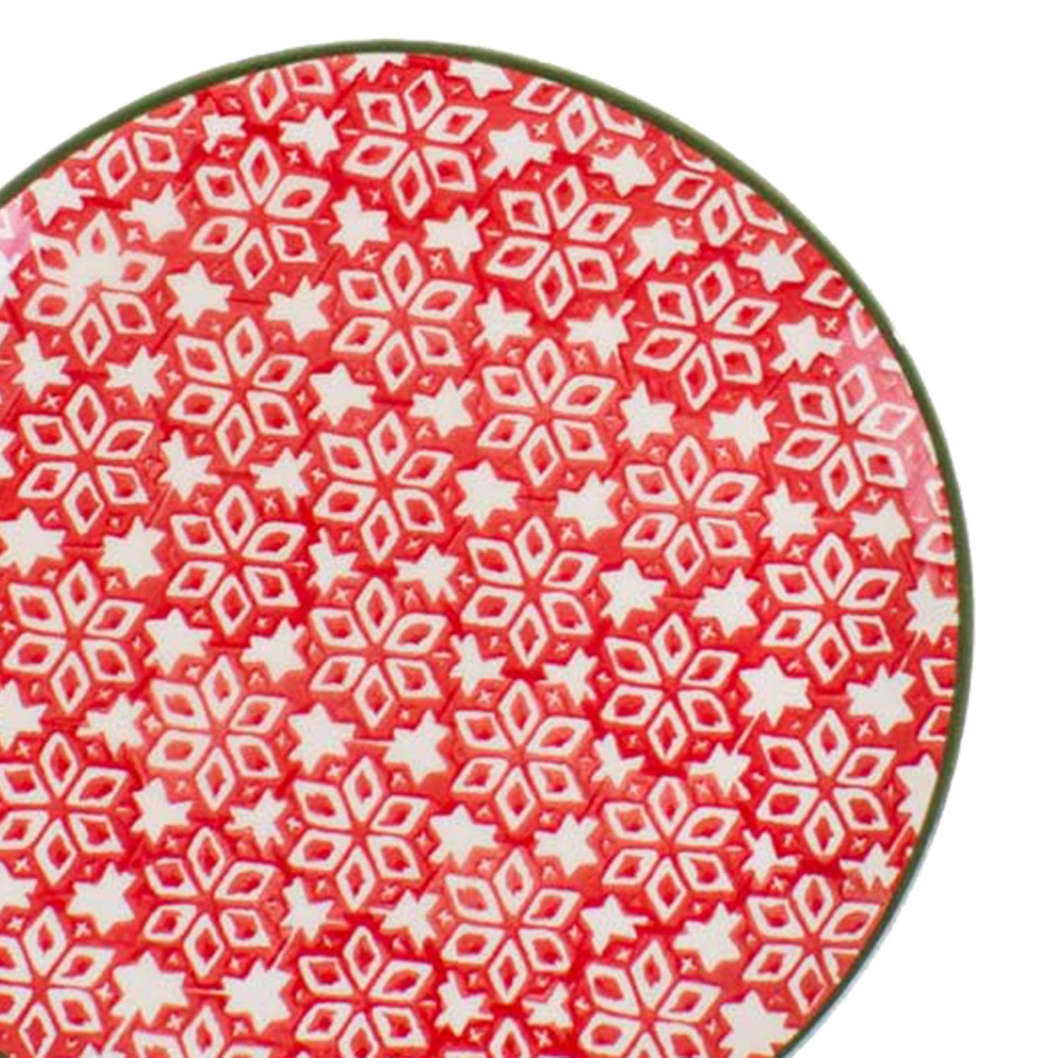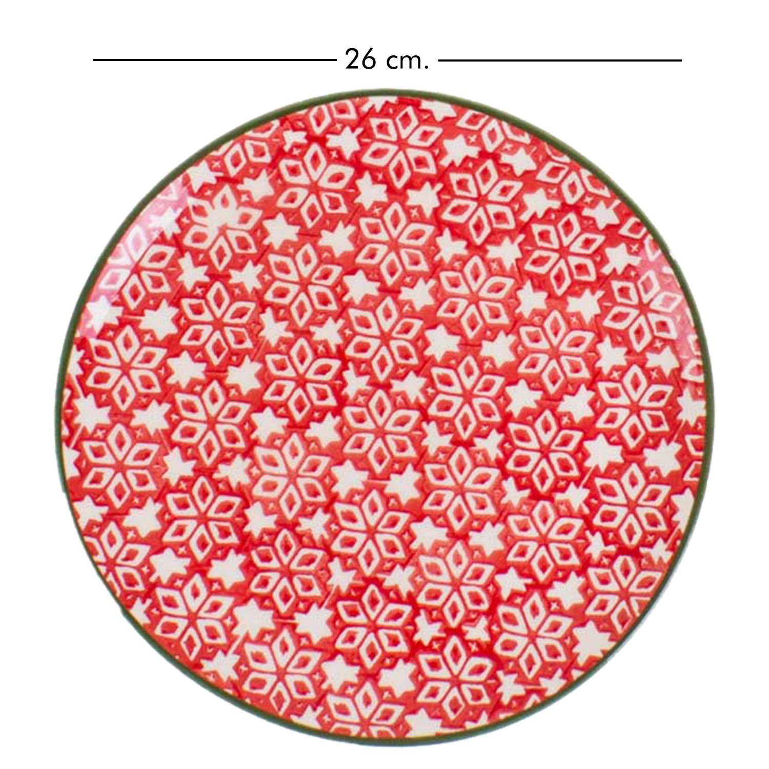 Seramik tabak 26 cm - Üzerindeki yıldız, kar tanesi ve çiçek desenleriyle yılbaşı konseptine uygun olarak tercih edilebilecek tabak çeşitlerimiz arasından şık bir yılbaşı sofrası hazırlayabileceğiniz dekoratif desenli seramik tabak.