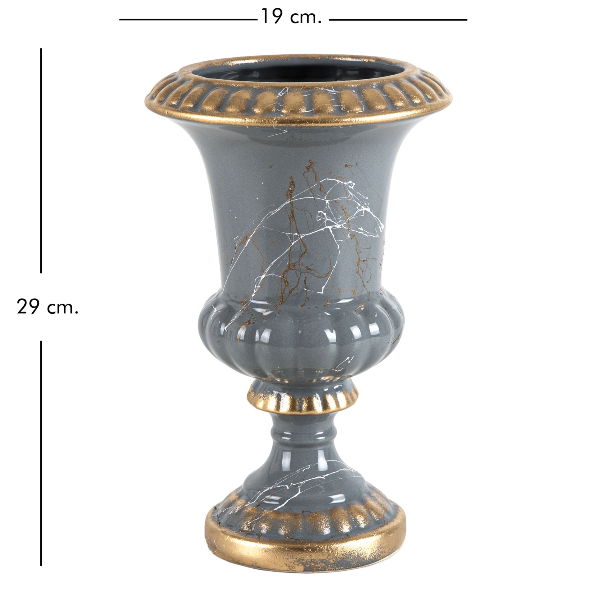 Seramik Vazo, Hanedan, Mermer Dekor, Gri - 19x29 cm