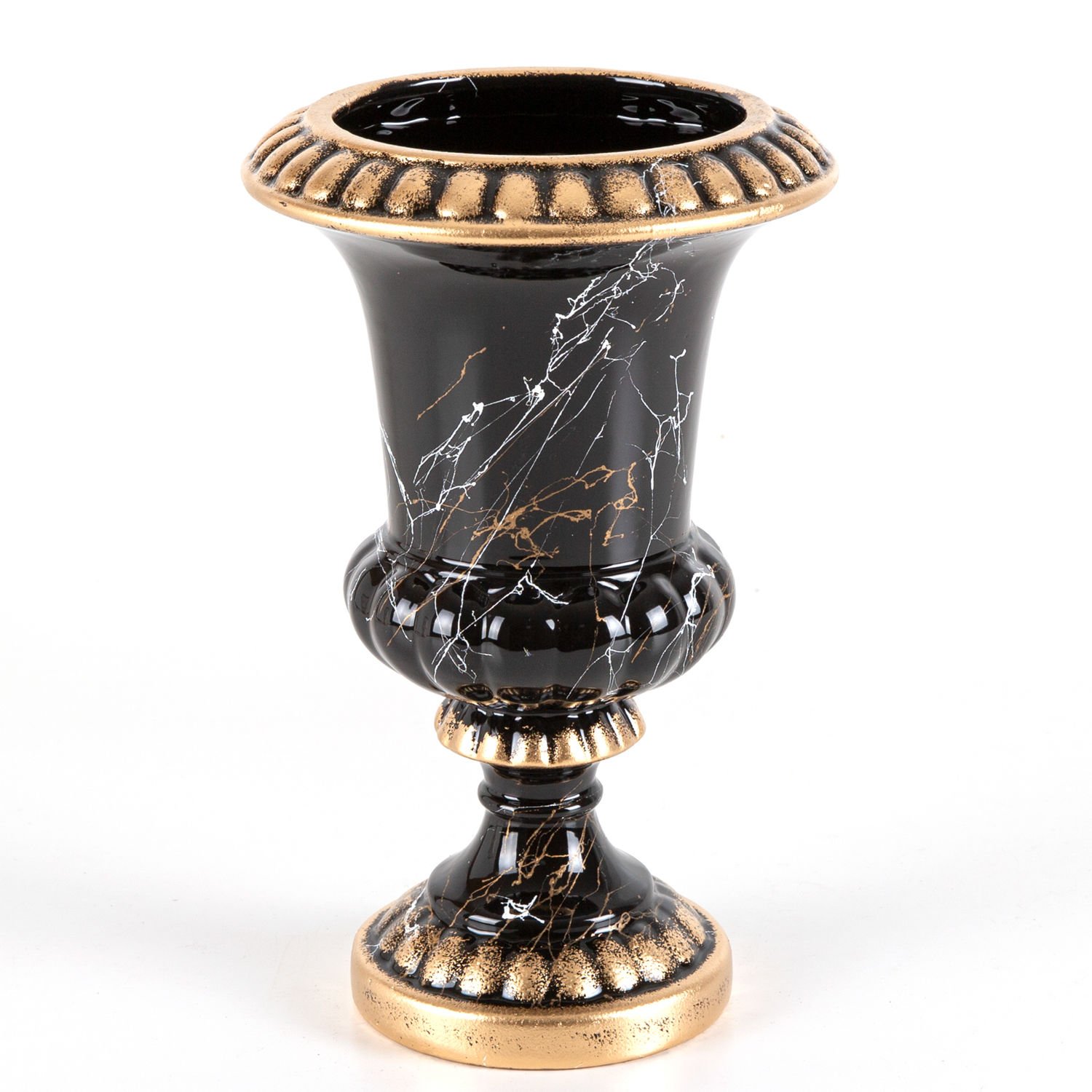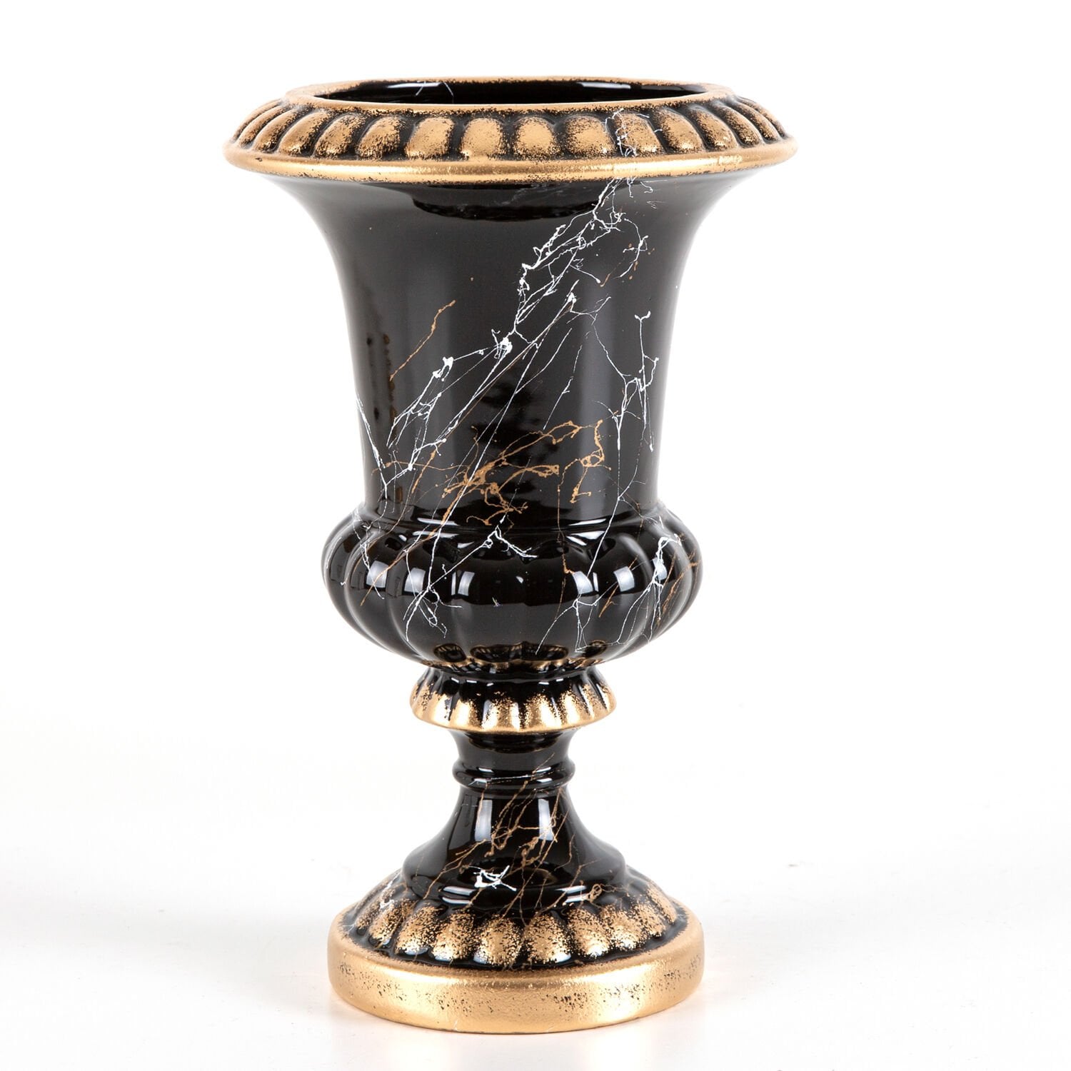 Seramik Vazo, Hanedan, Mermer Dekor, Siyah - 19x29 cm