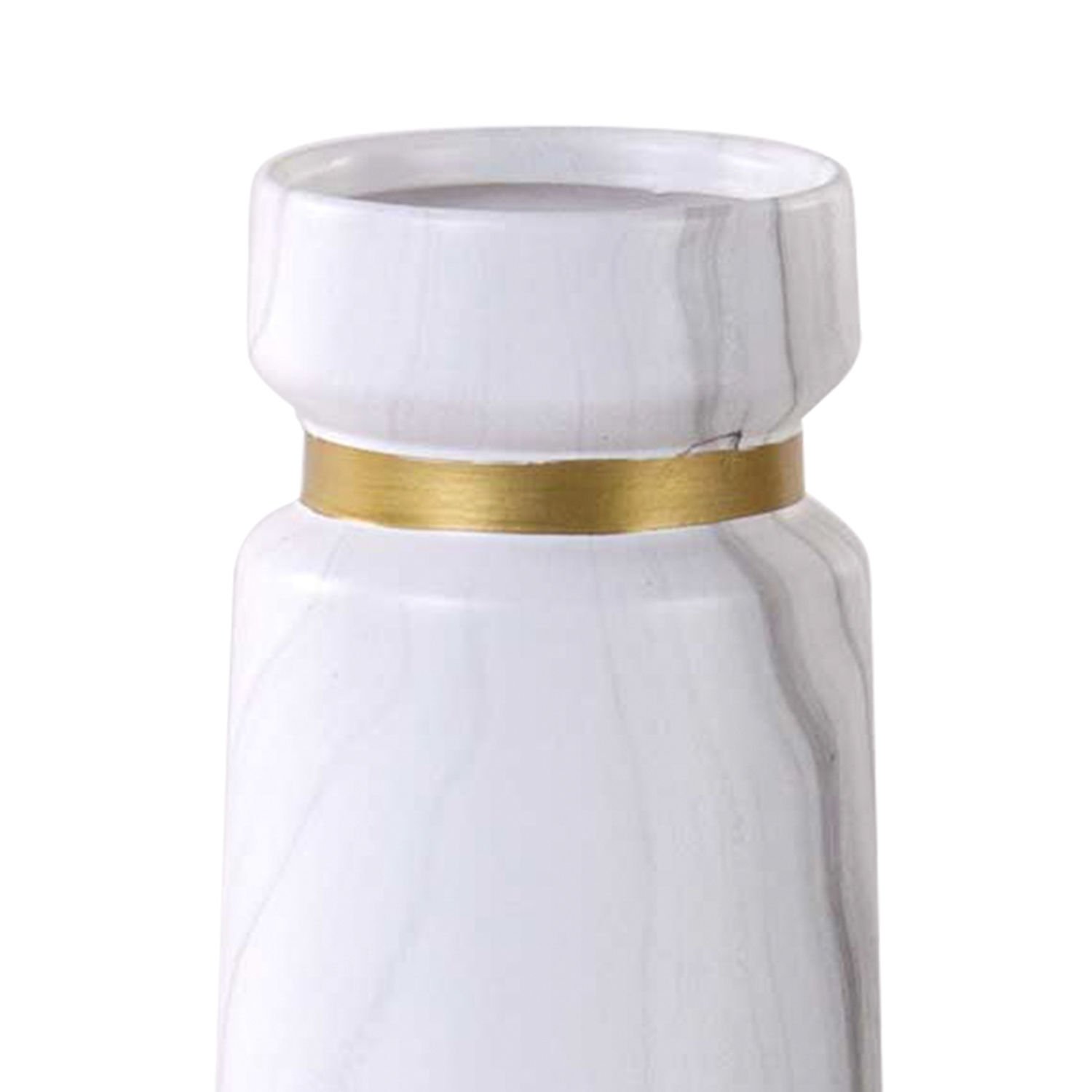 Seramik Vazo, Mermer Desenli, Dore Kuşaklı, Beyaz - 11x25 cm