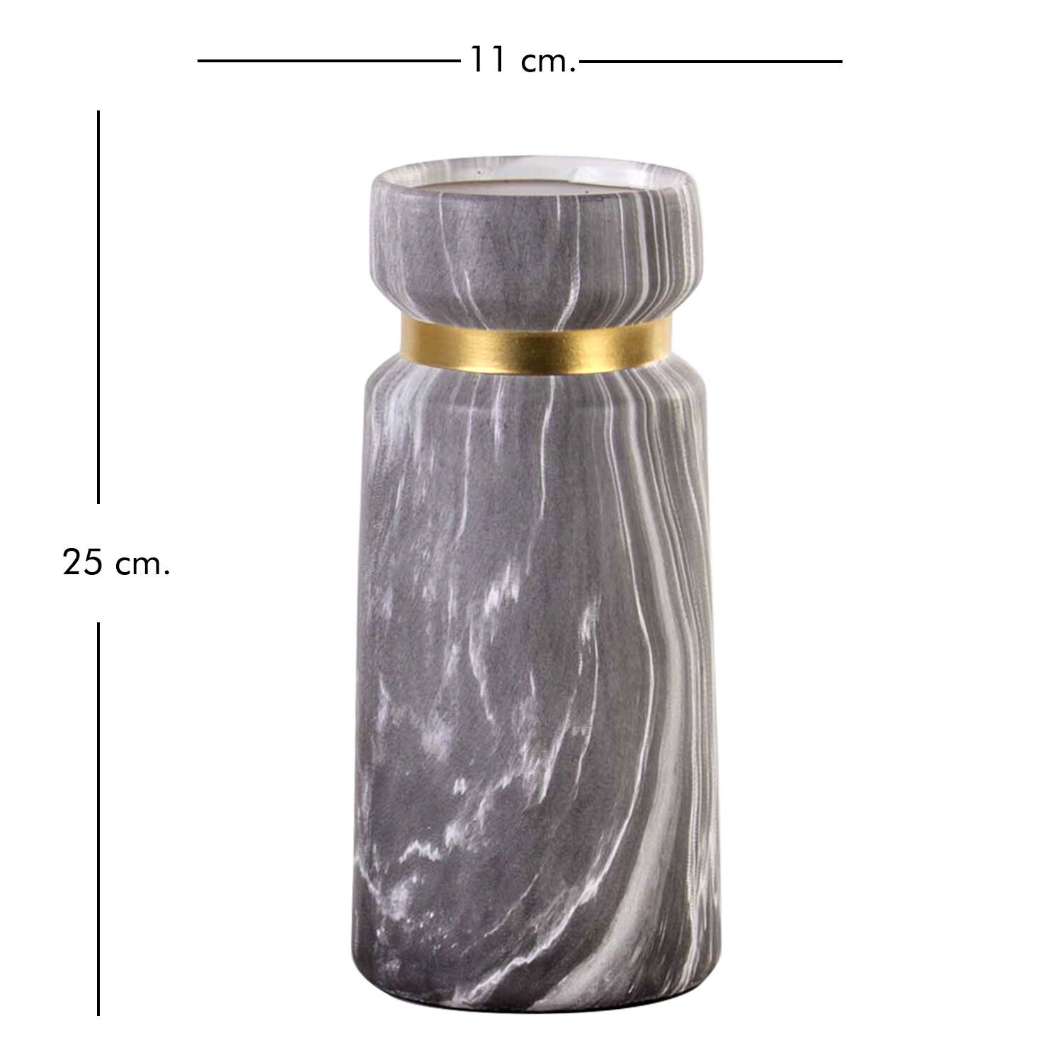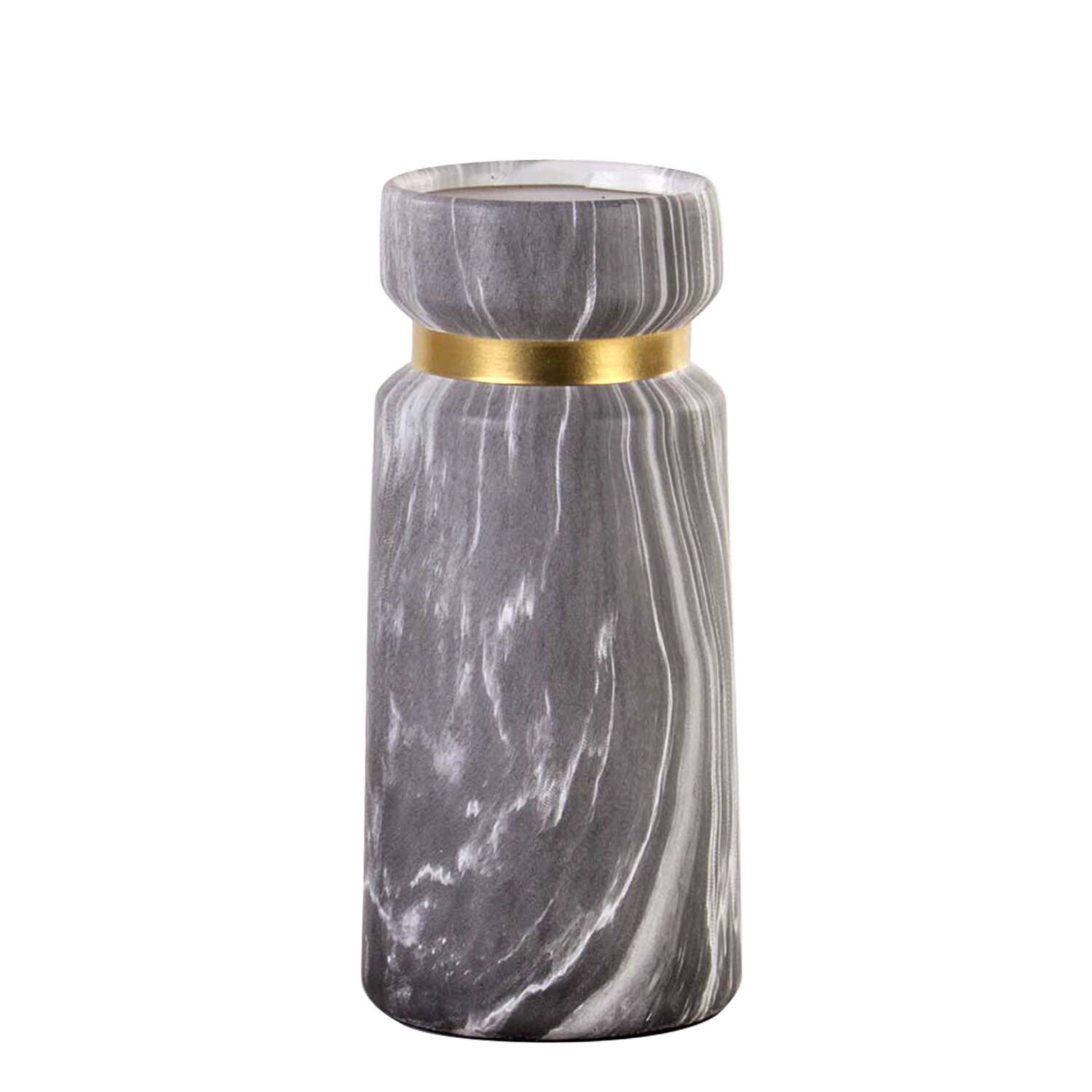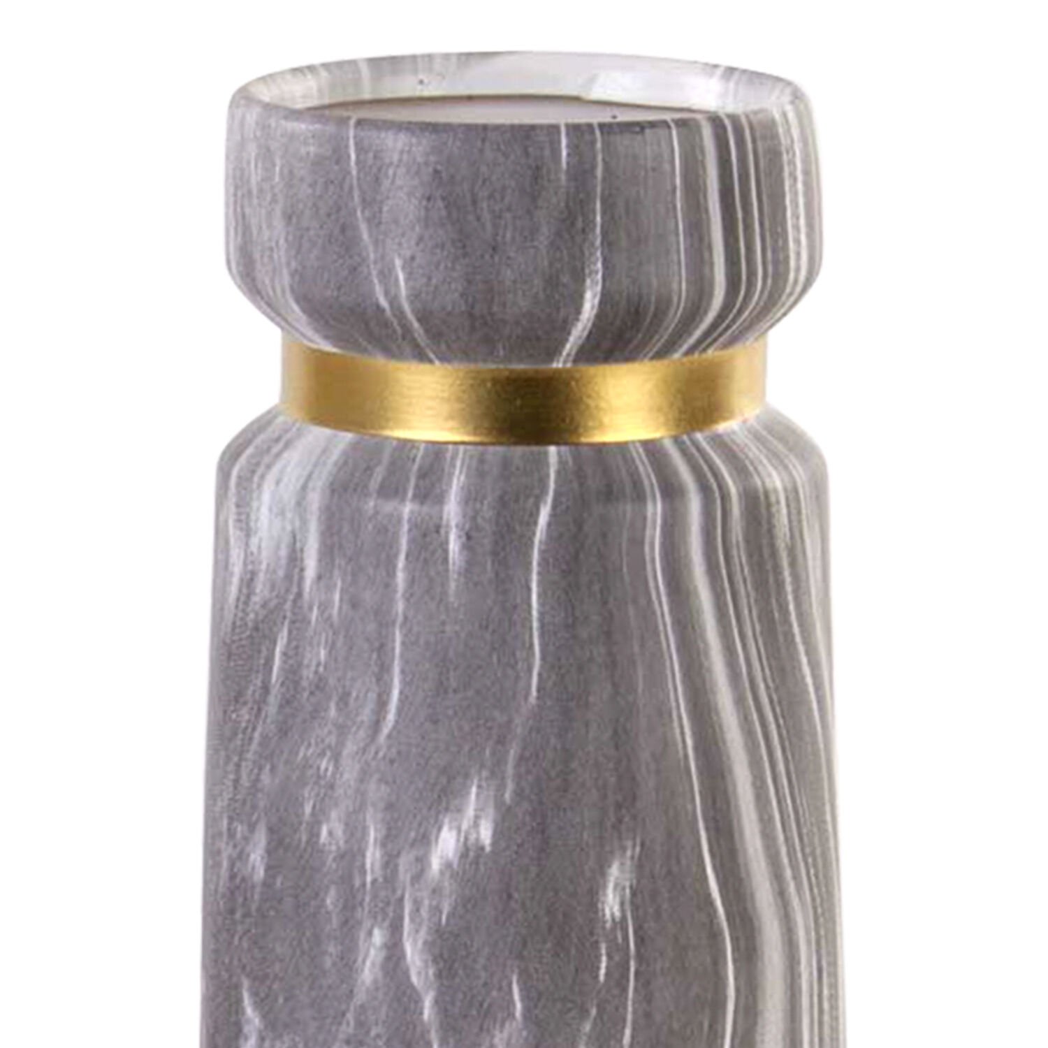 Seramik Vazo, Mermer Desenli, Dore Kuşaklı, Gri - 11x25 cm