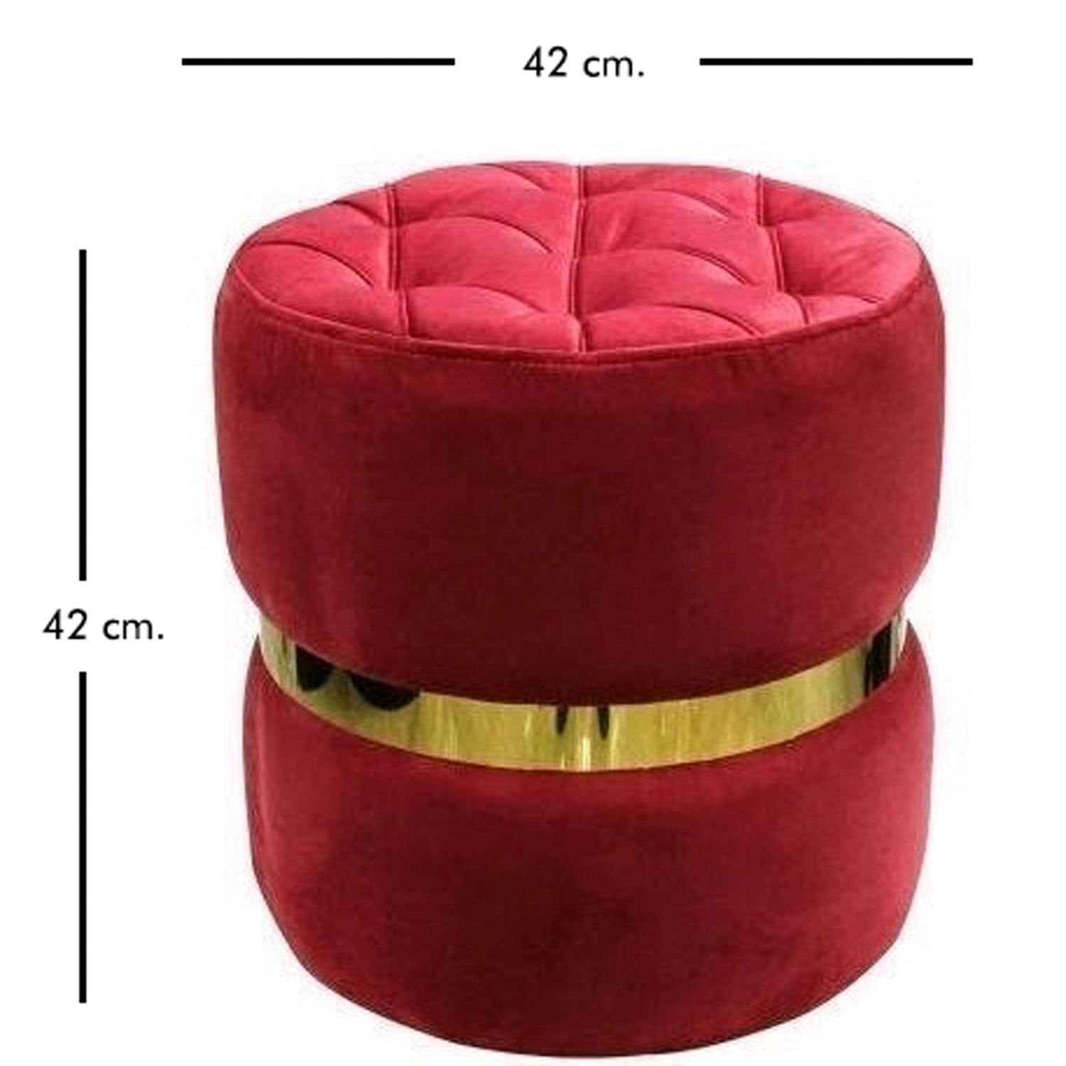 Ortası Altın Kemerli Modern Silindir Puf Bordo 42 x 42 Cm.