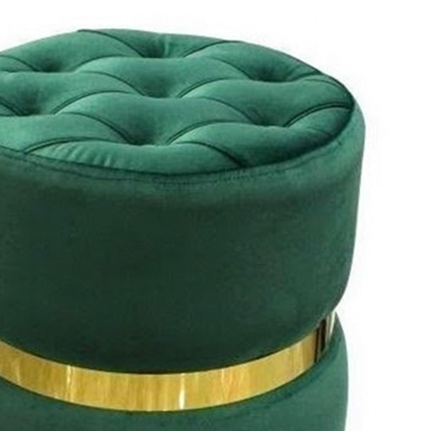Ortası Altın Kemerli Modern Silindir Puf Yeşil 42 x 42 Cm.