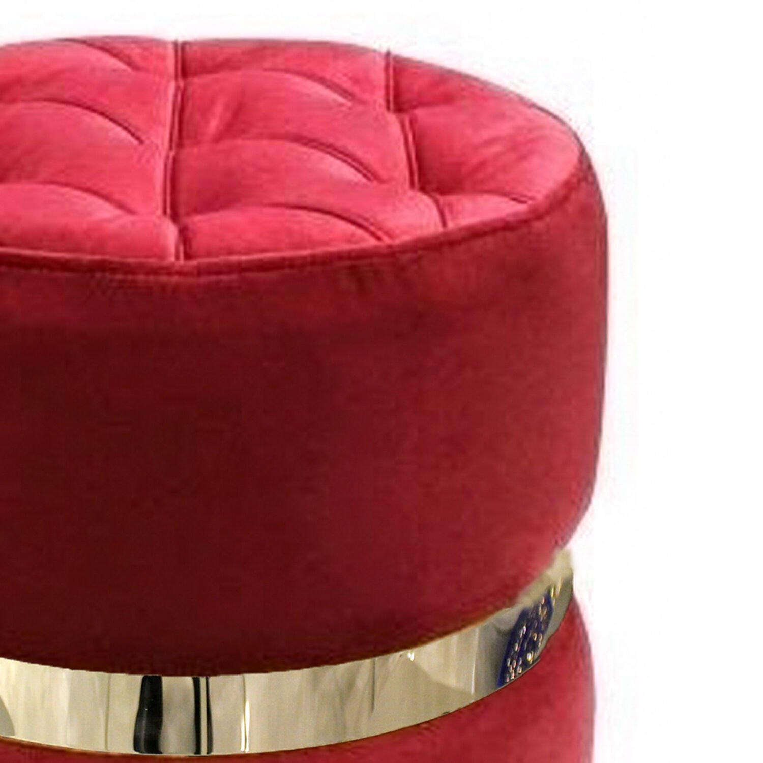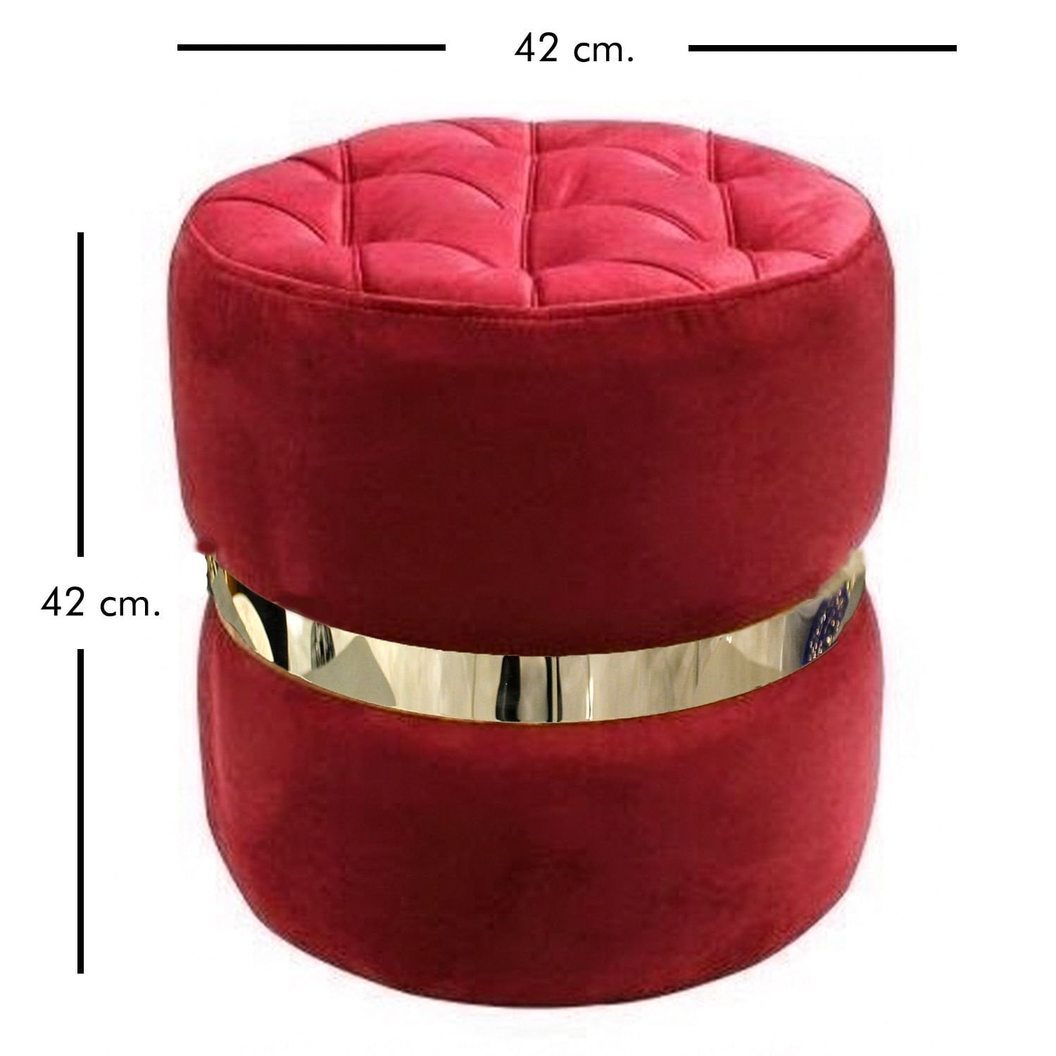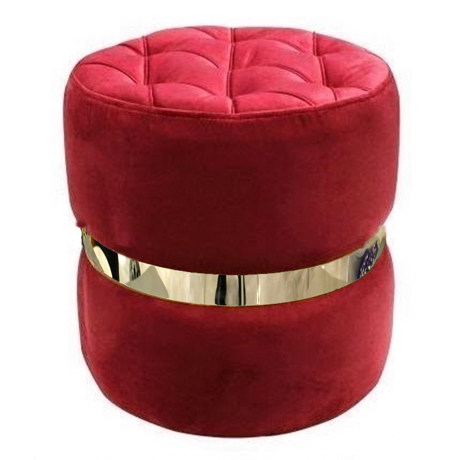 Ortası Gümüş Kemerli Modern Silindir Puf Bordo 42 x 42 Cm.