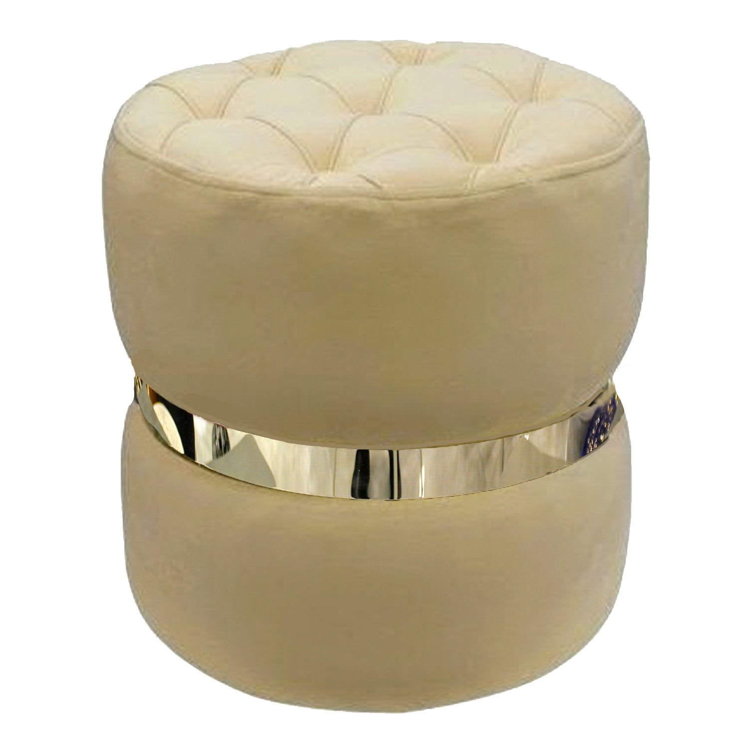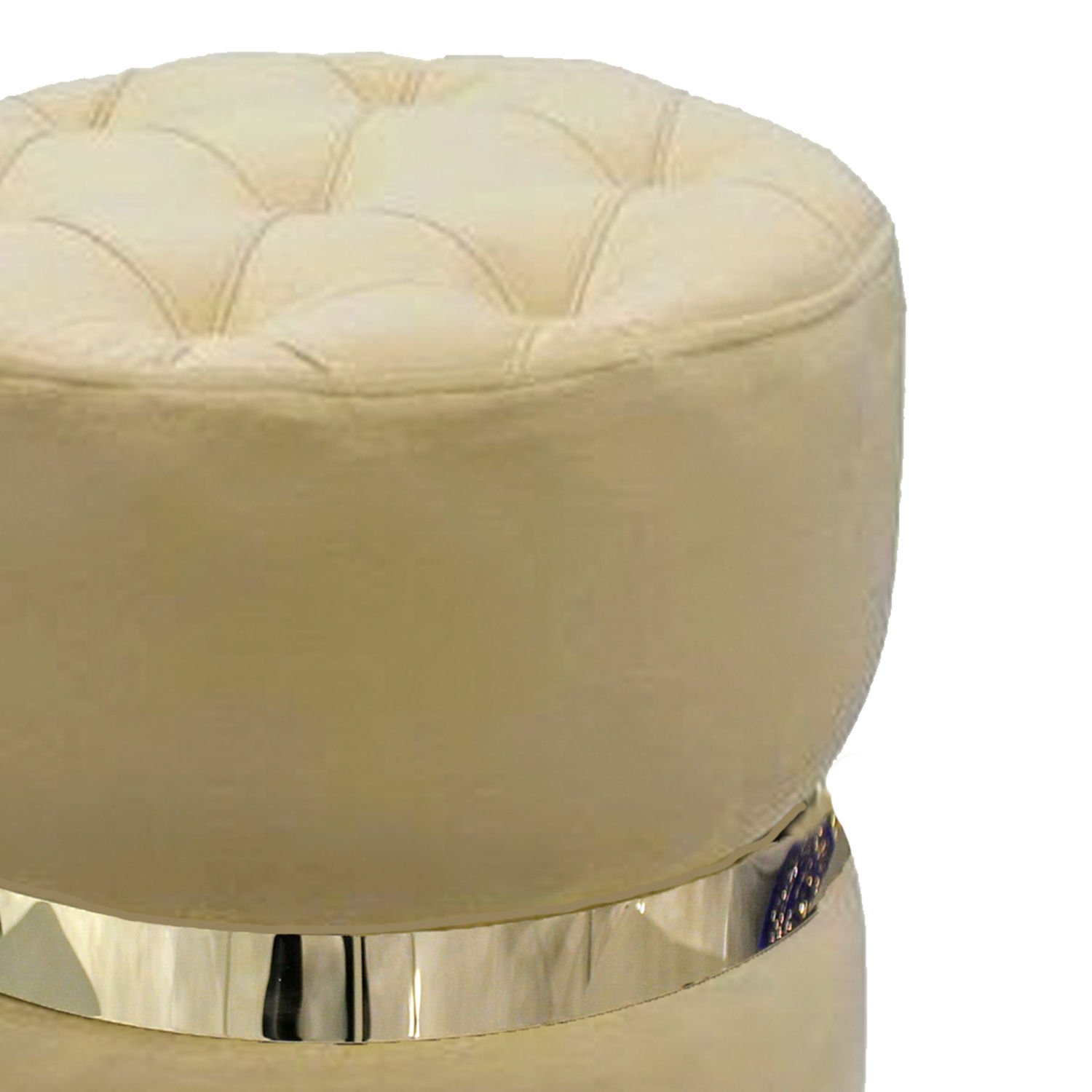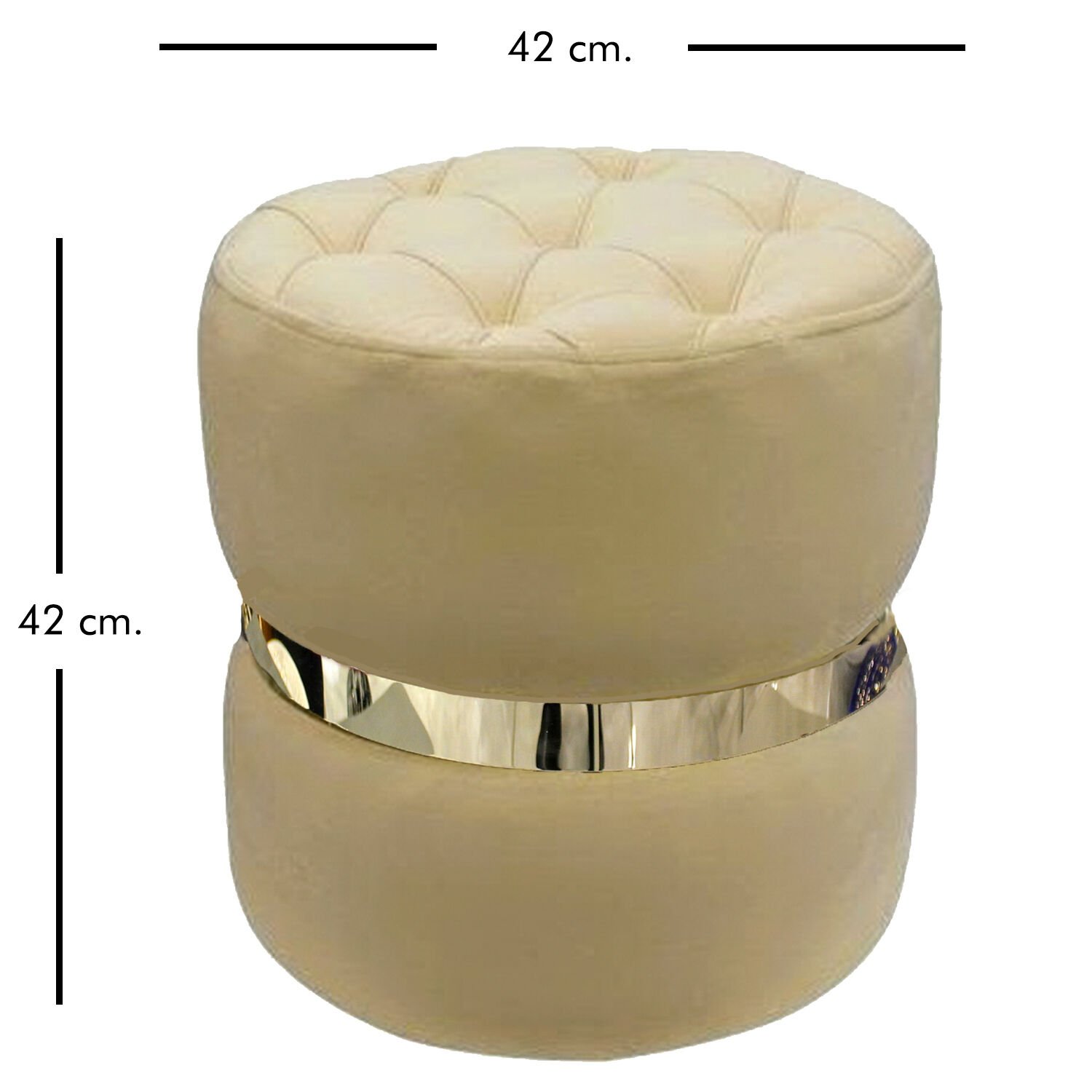 Ortası Gümüş Kemerli Modern Silindir Puf Krem 42 x 42 Cm.