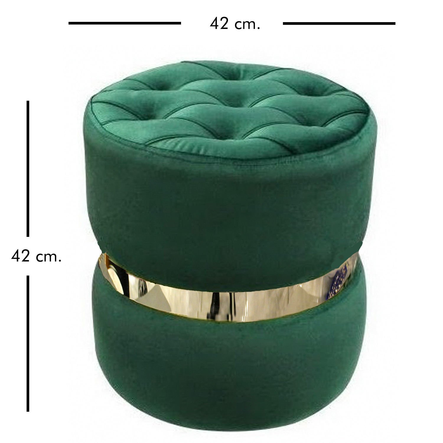 Ortası Gümüş Kemerli Modern Silindir Puf Yeşil 42 x 42 Cm.