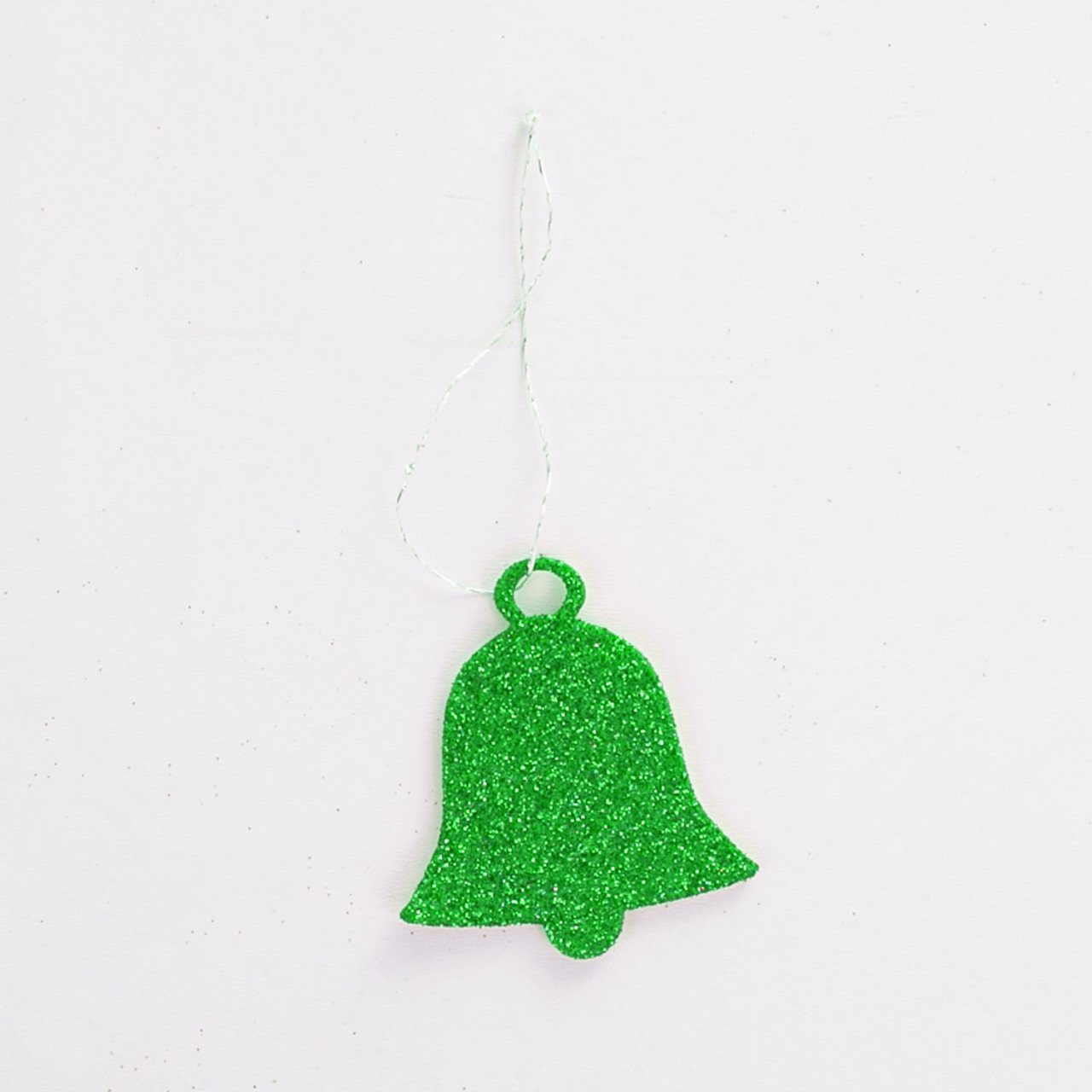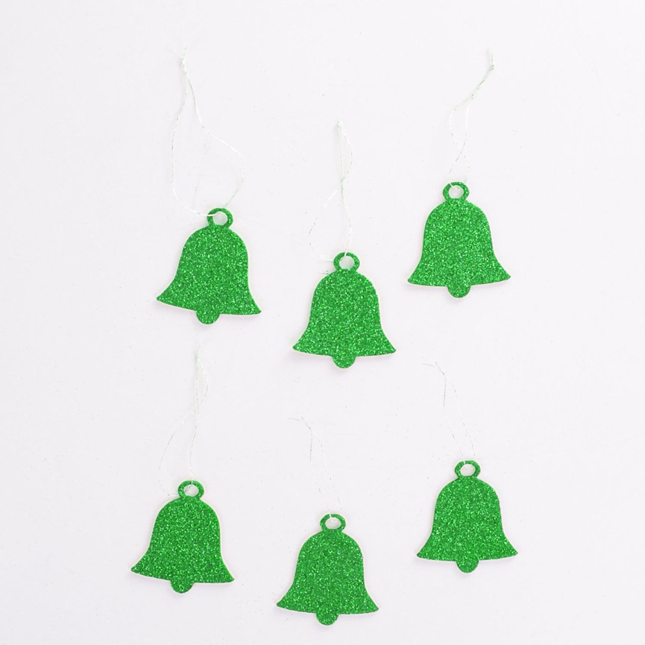 Simli Eva Yılbaşı Süsü Yeşil Çan 6 Adet