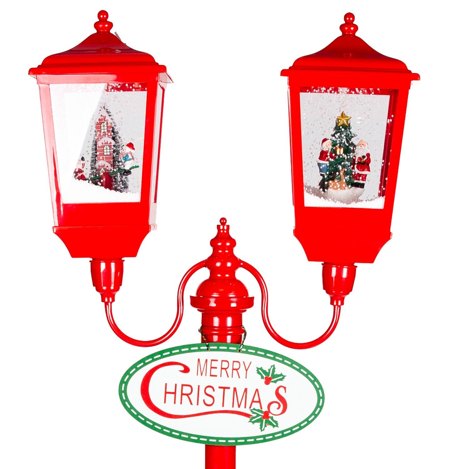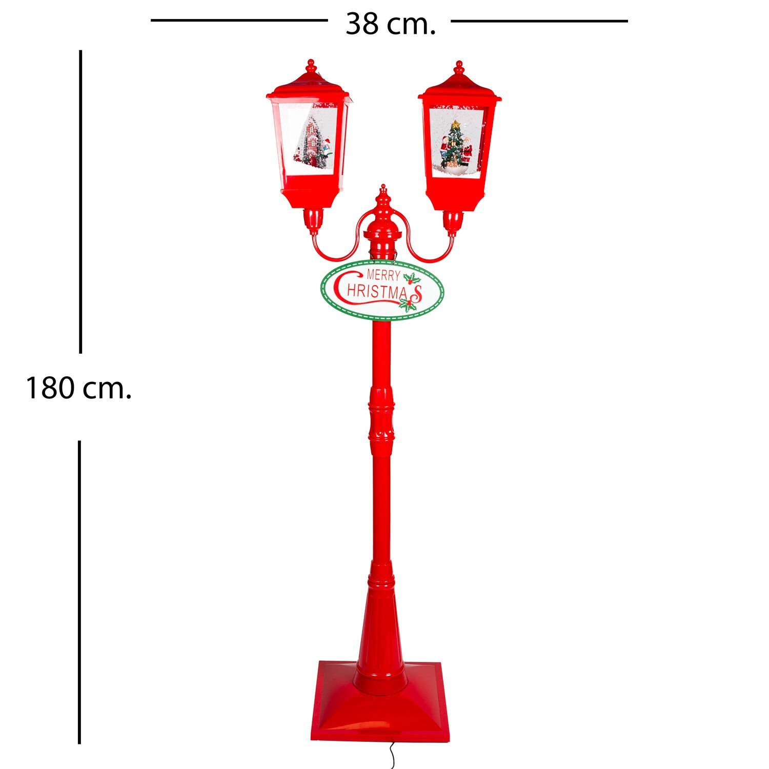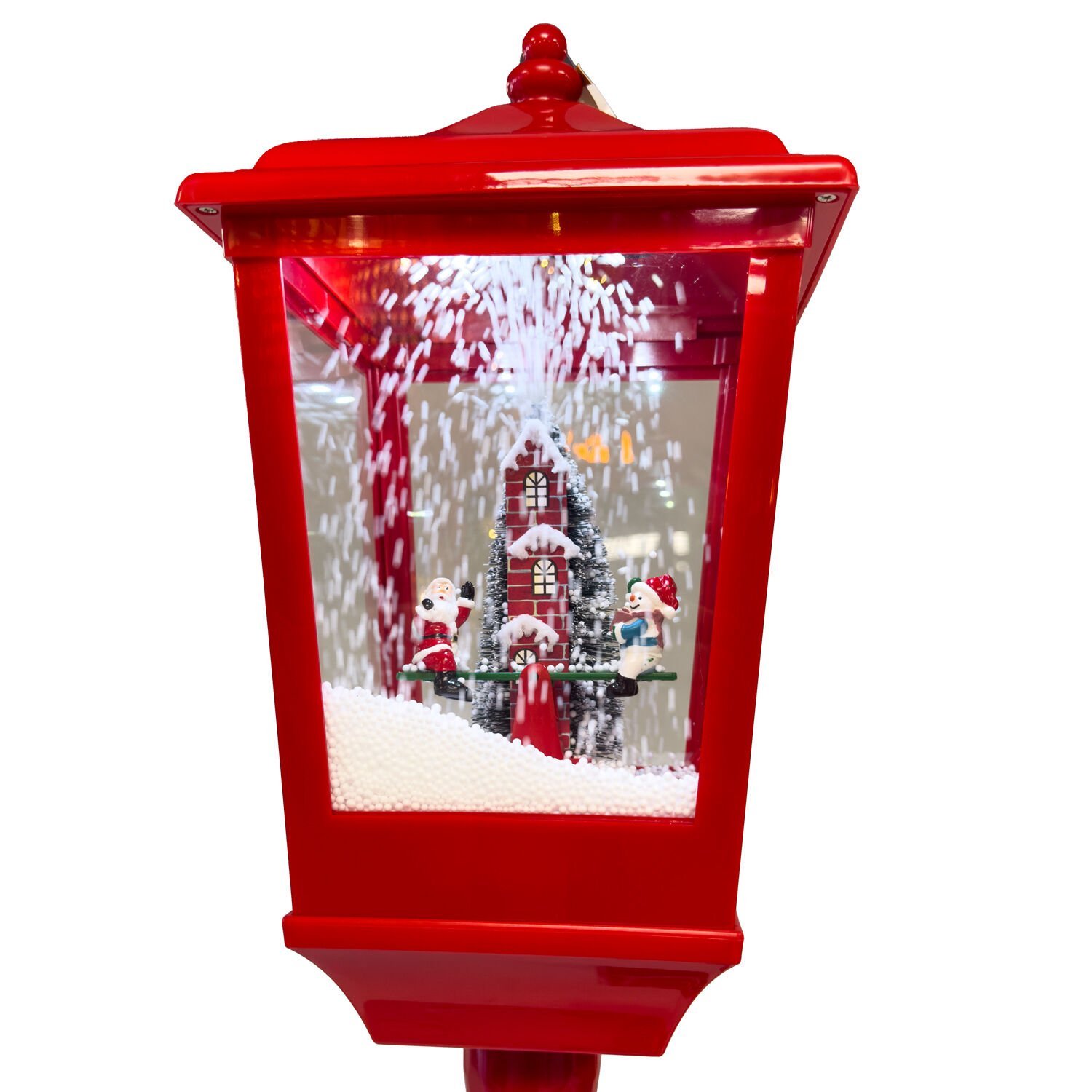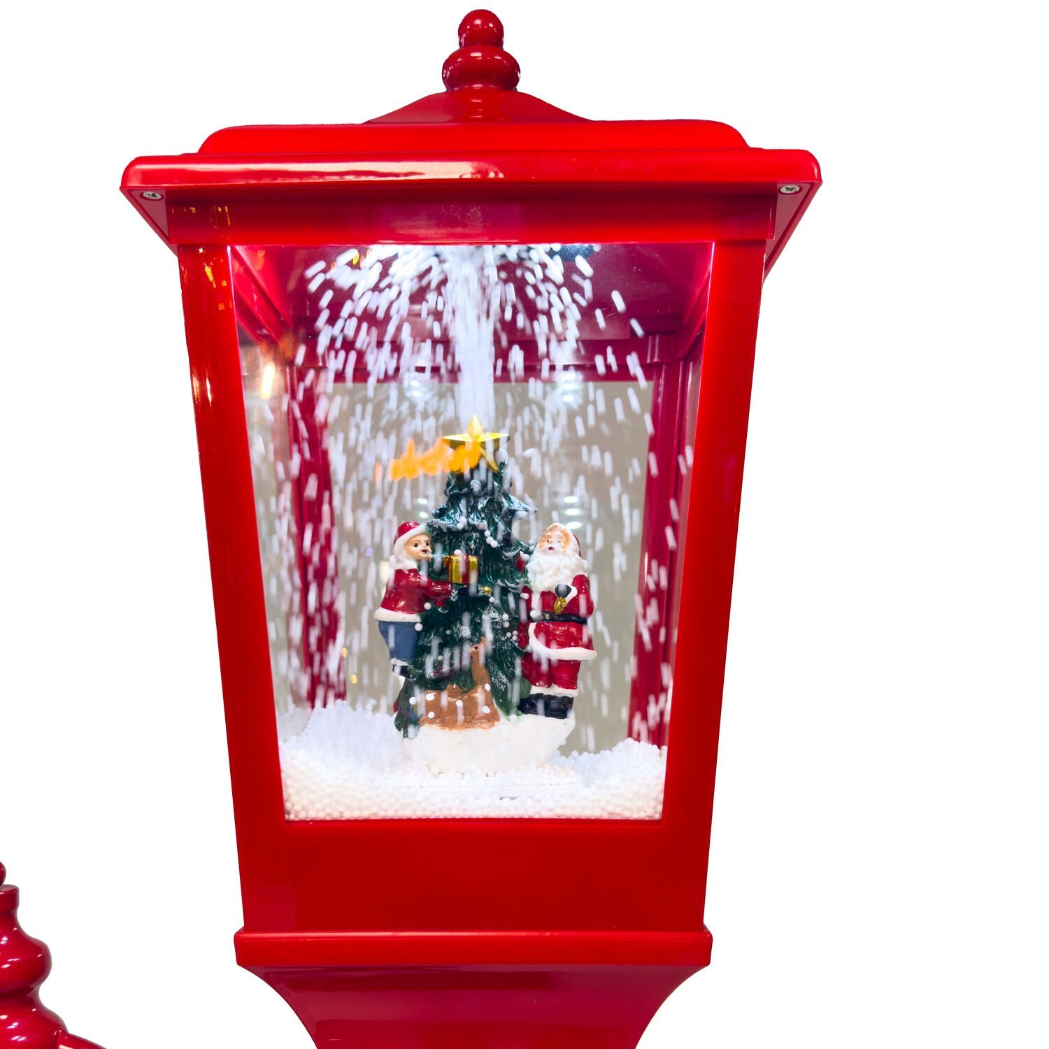 Sokak Lambası, İkili, Kırmızı - Kar Fıskiyeli, Işıklı, Müzikli, 180 cm