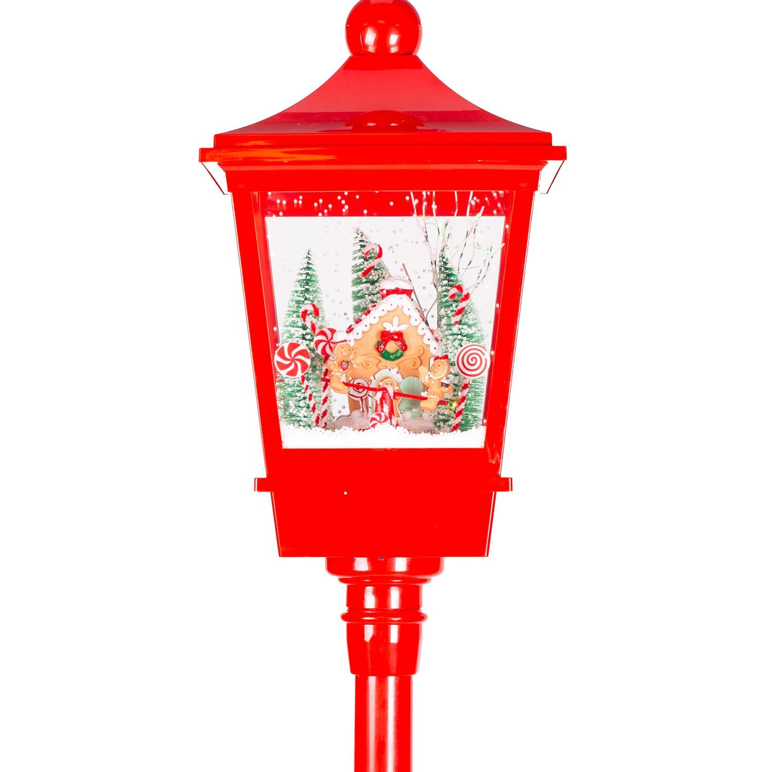 Sokak Lambası, Kırmızı - Kar Fıskiyeli, Işıklı, Müzikli, 184 cm
