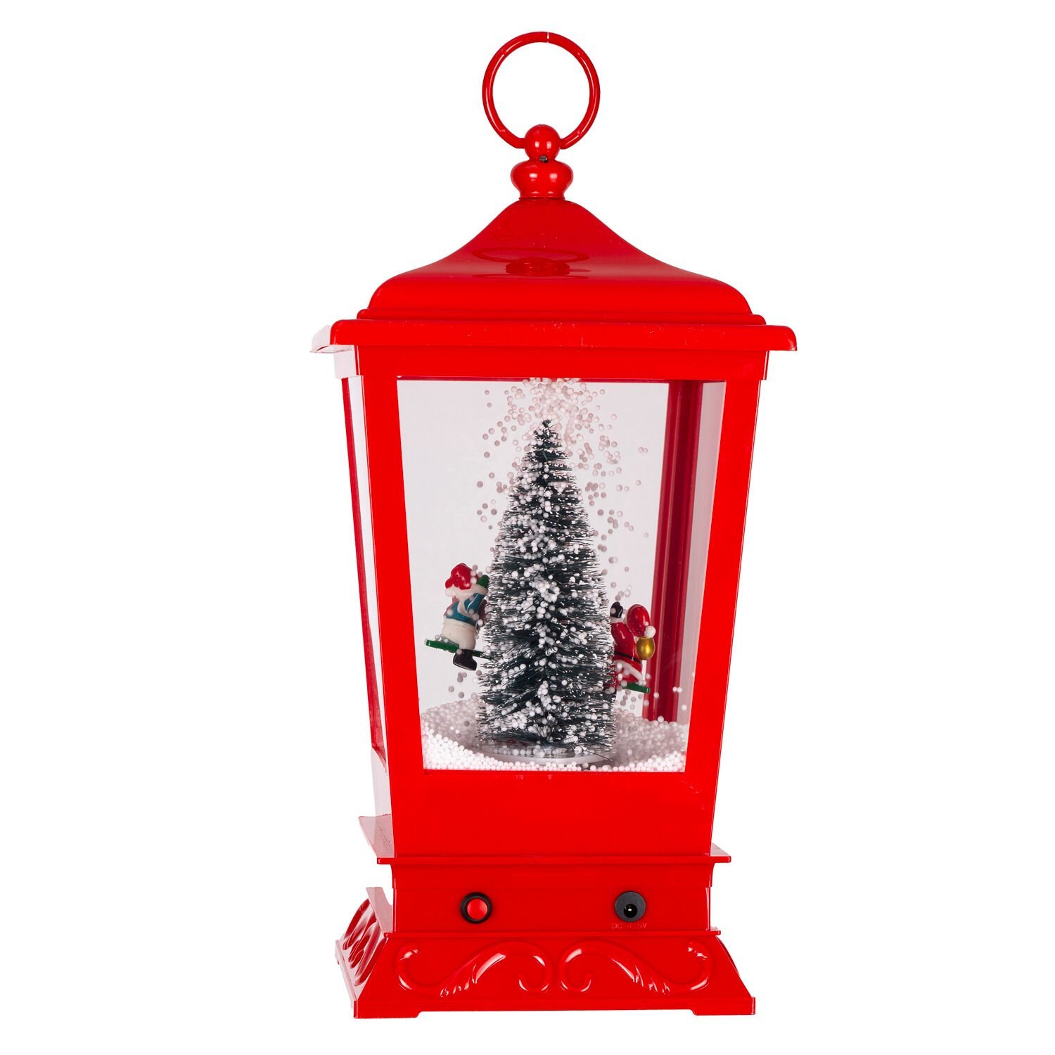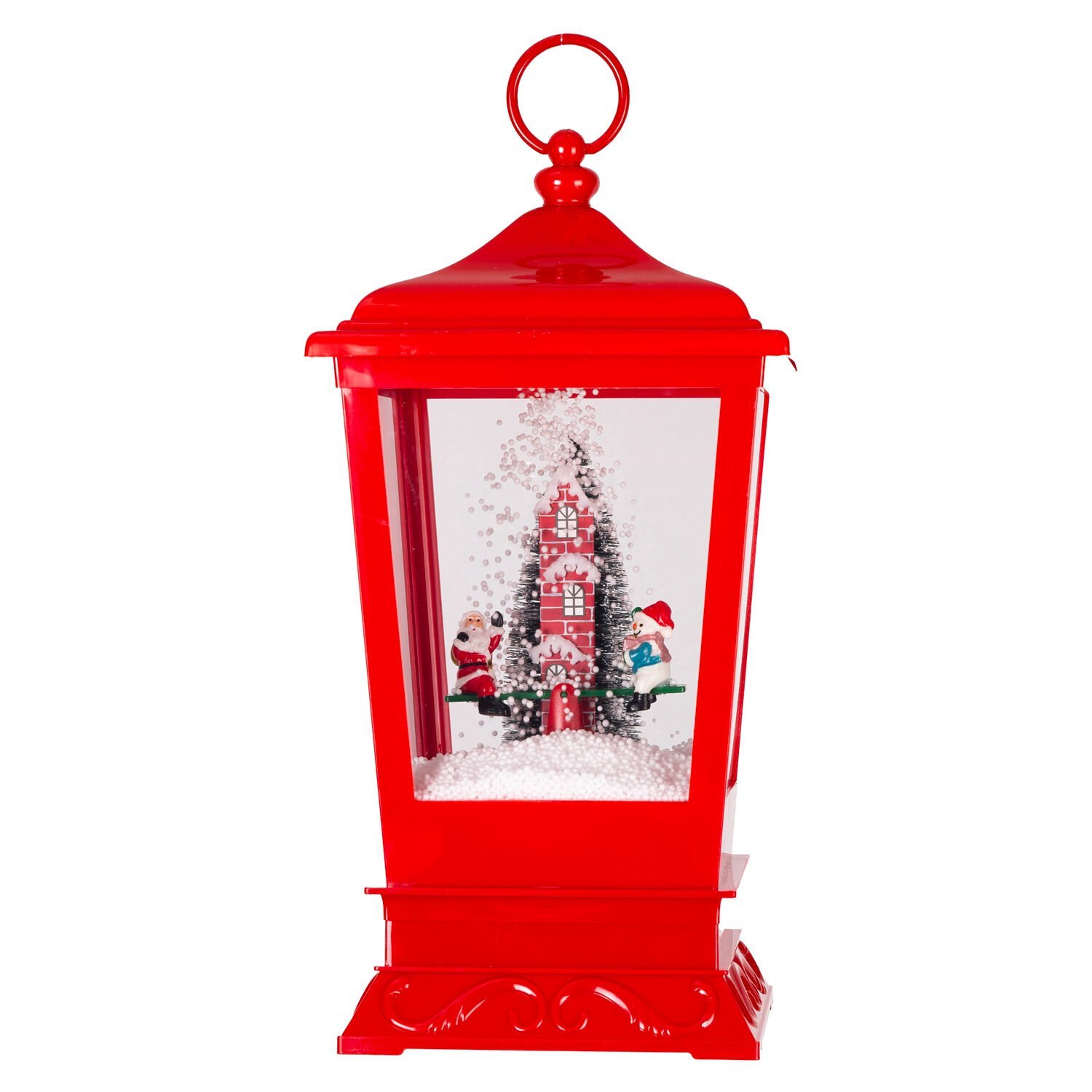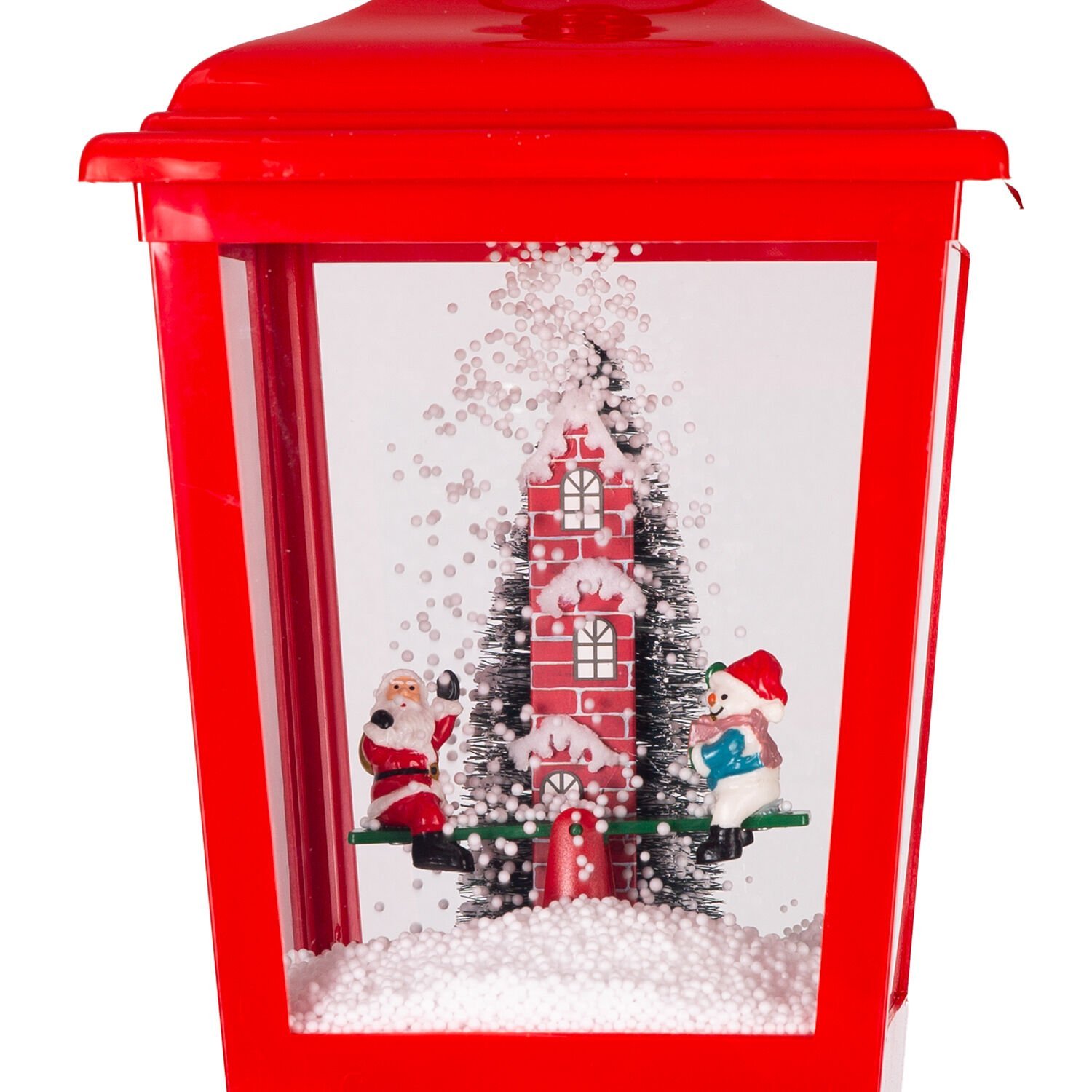 Sokak Lambası, Kırmızı - Kar Fıskiyeli, Işıklı, Müzikli, 20x20x40 cm