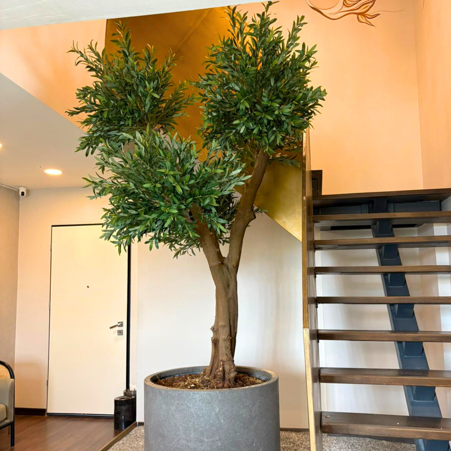Sürecimiz, uygulama yapılacak noktanın ölçülerini ve ışık açısını analiz ederek başladı. Müşterimizin tercihi doğrultusunda, zeytin ağacının bilge ve huzur veren duruşuna odaklandık. Gövde yapısından dal yoğunluğuna kadar her ayrıntıyı müşterimizle birlikte kararlaştırdık. Usta ellerde şekillenen ağacımız, atölyemizde titizlikle hazırlandı ve son aşamada belirlenen noktaya adeta o alanın bir parçasıymış gibi yerleştirildi.