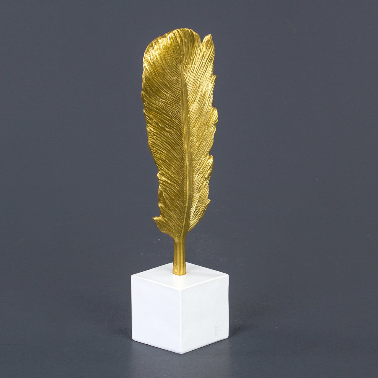 Göz kamaştırıcı bir şıklık. Yeni tüy biblolar dore rengi ve tasarımı ile dekorasyonlarınıza şıklığın havasını estirecek. Malzeme: Polirezen. Ölçüler: En: 7.5 cm. - Boy: 5 cm. - Yüks.: 24 cm.