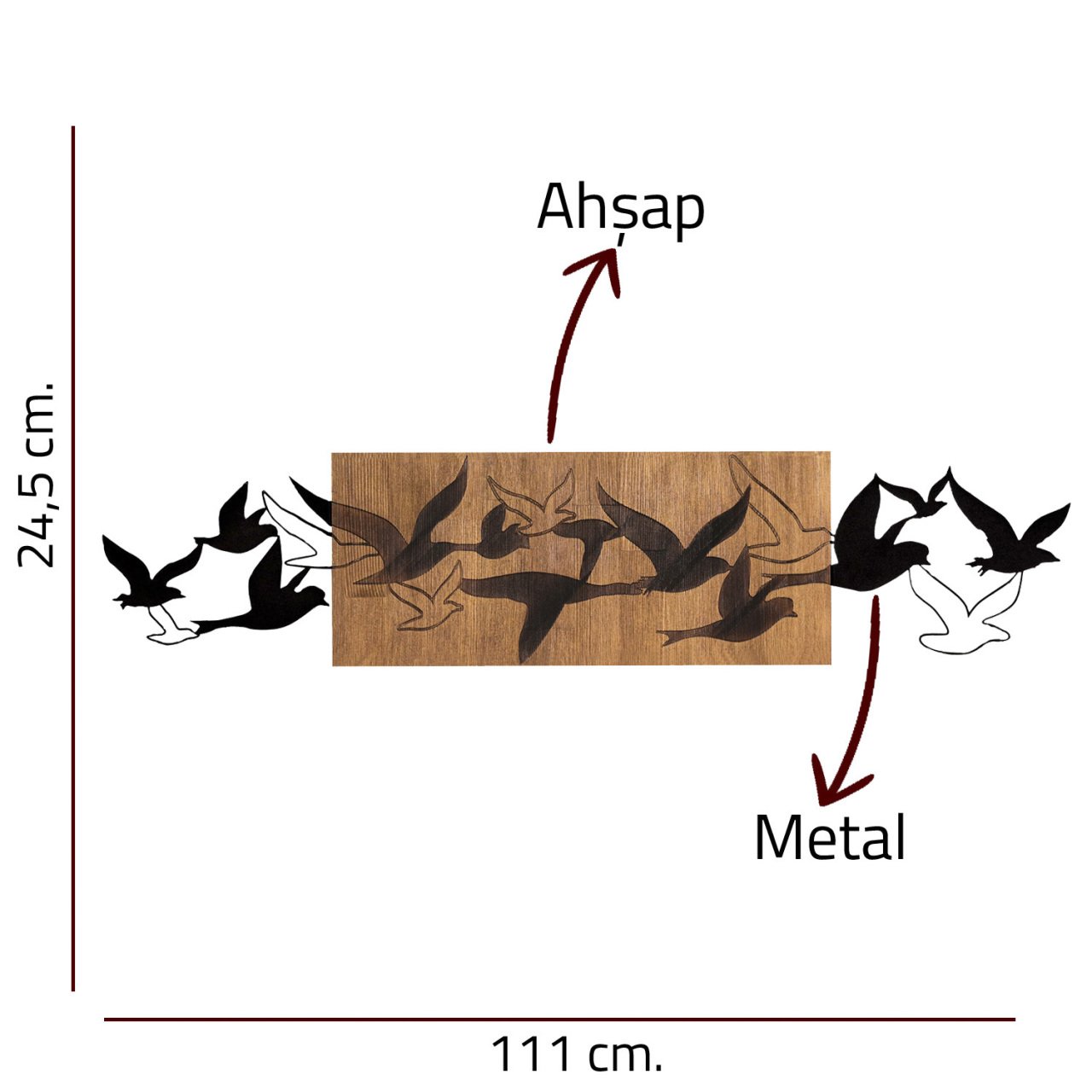 Uçan Kuşlar Ahşap/Metal Duvar Pano 111x24,5 cm.