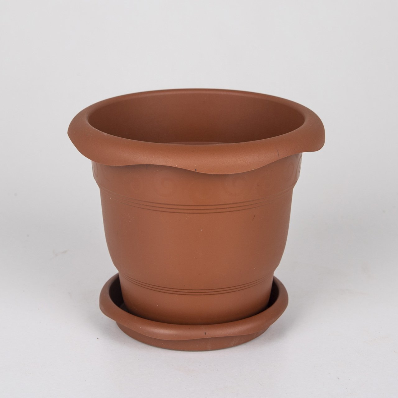 VeraMaya 3 Adet Tabaklı Plastik Saksı Kahverengi 1 Litre 14x12 Cm