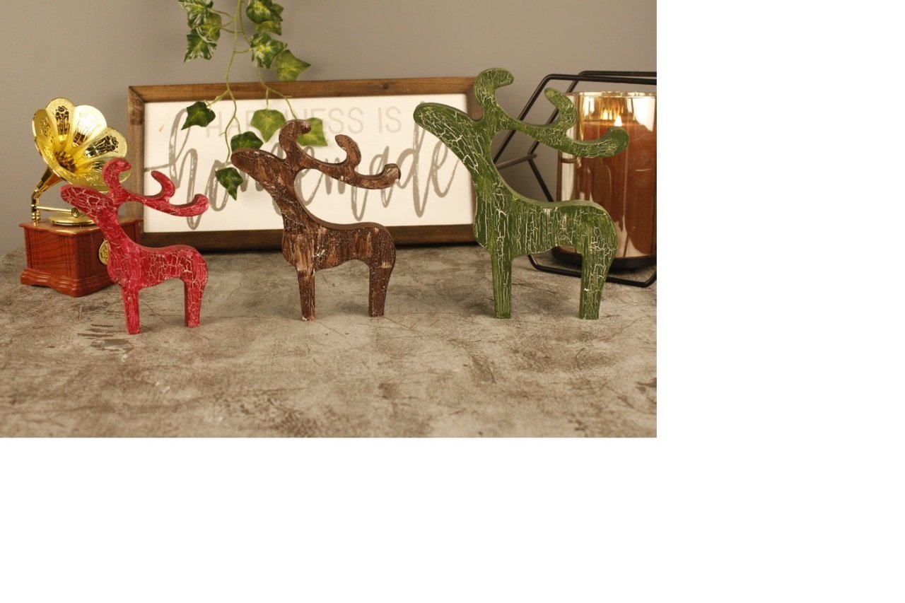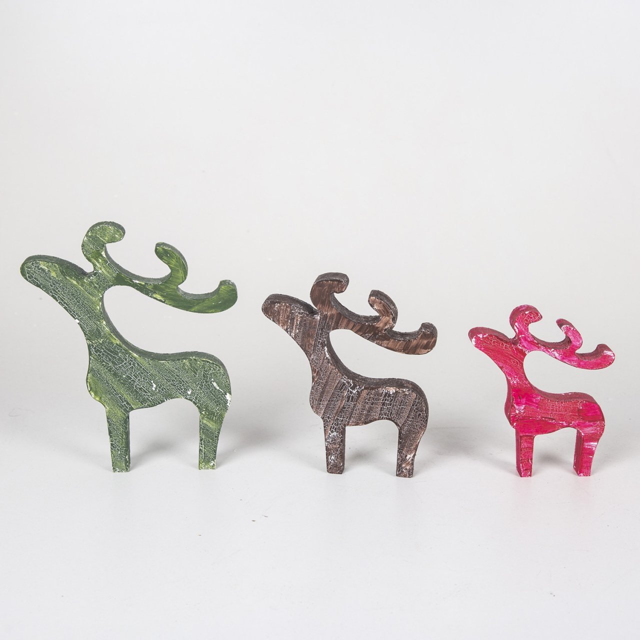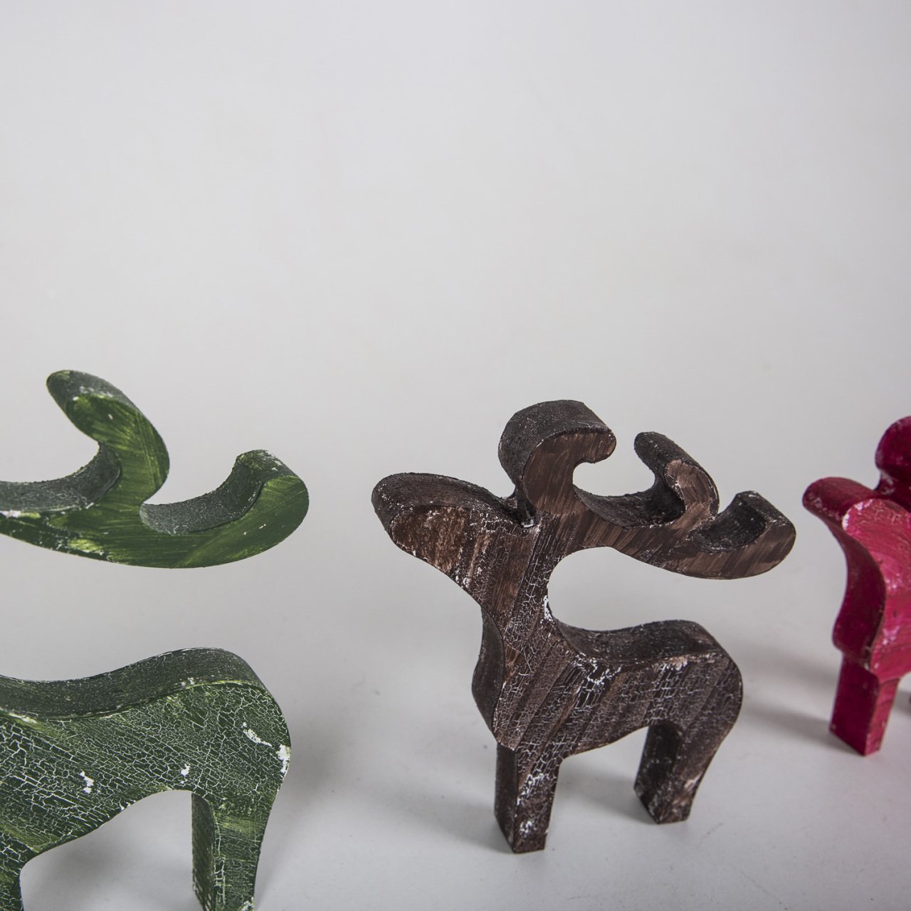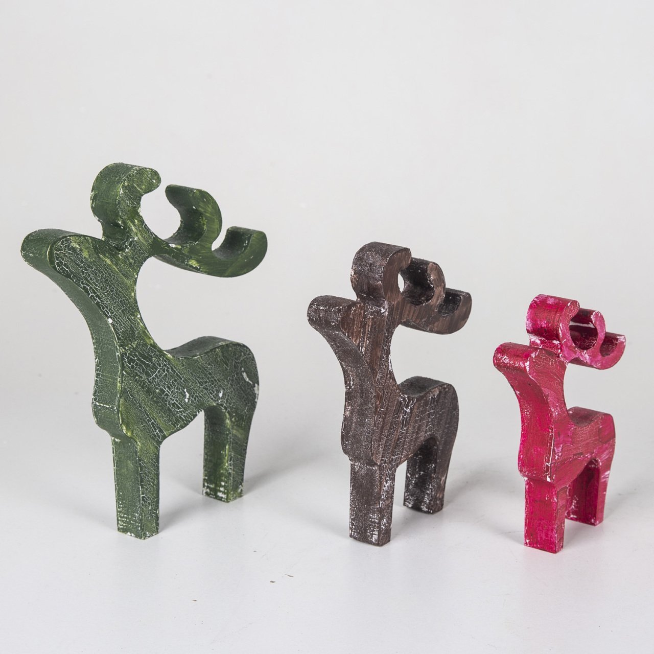 Veramaya 3 Lü Ahşap Geyik Biblo Set 40x17 Cm