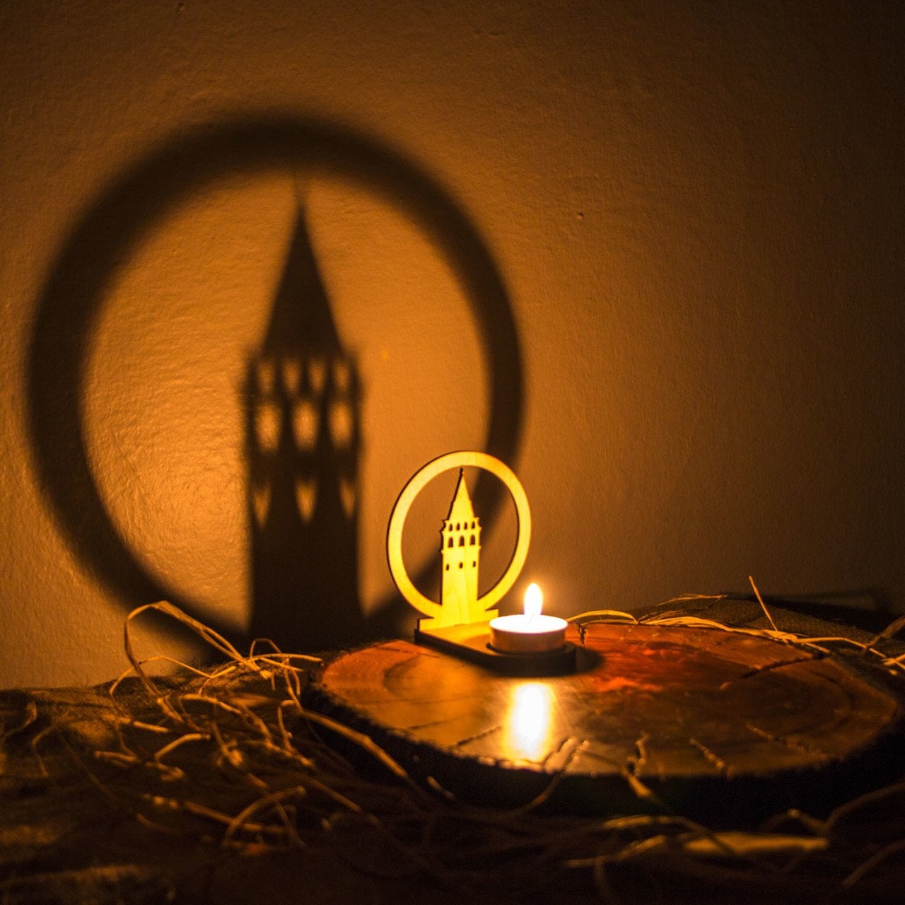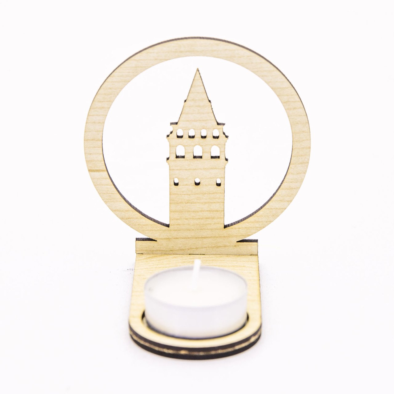 Veramaya Ahşap Lazer Kesim Tealight Galata Kulesi Gölge Mumluk 9x10x5 Cm