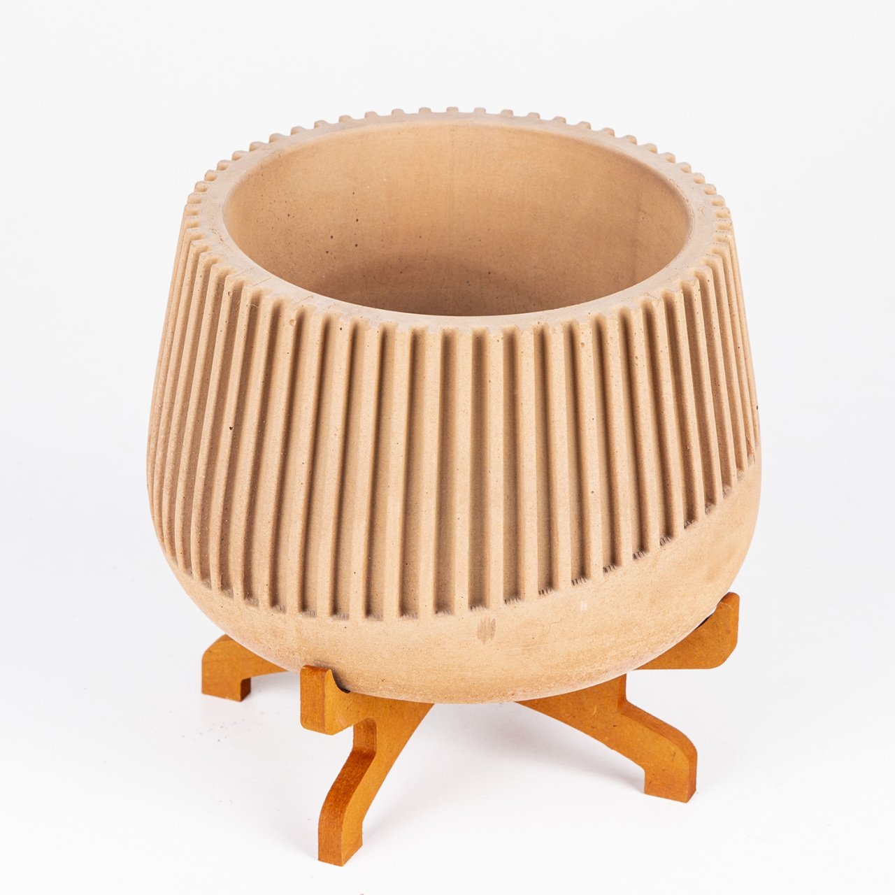 Veramaya Ayaklı Büyük Boy Çizgili Kahverengi Beton Saksı 17x19 Cm
