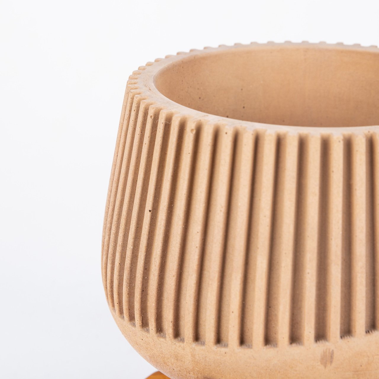 VeraMaya Ayaklı Büyük Boy Çizgili Kahverengi Beton Saksı 17x19 Cm