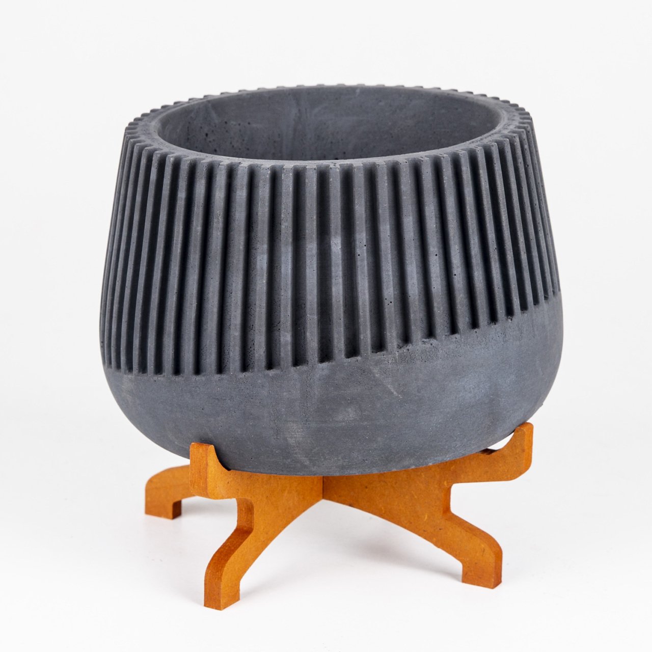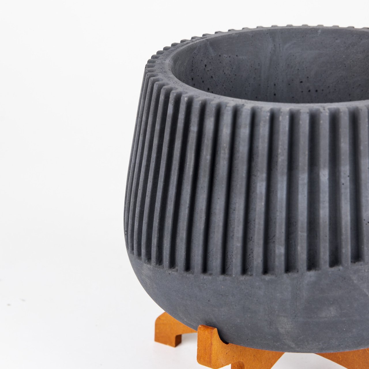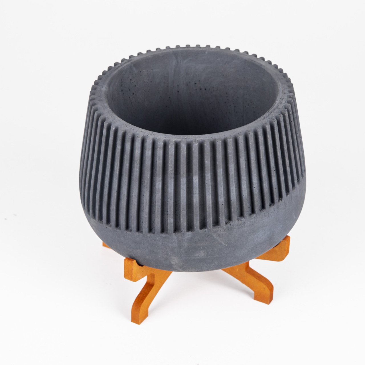 Veramaya Ayaklı Büyük Boy Çizgili Siyah Beton Saksı 17x19 Cm