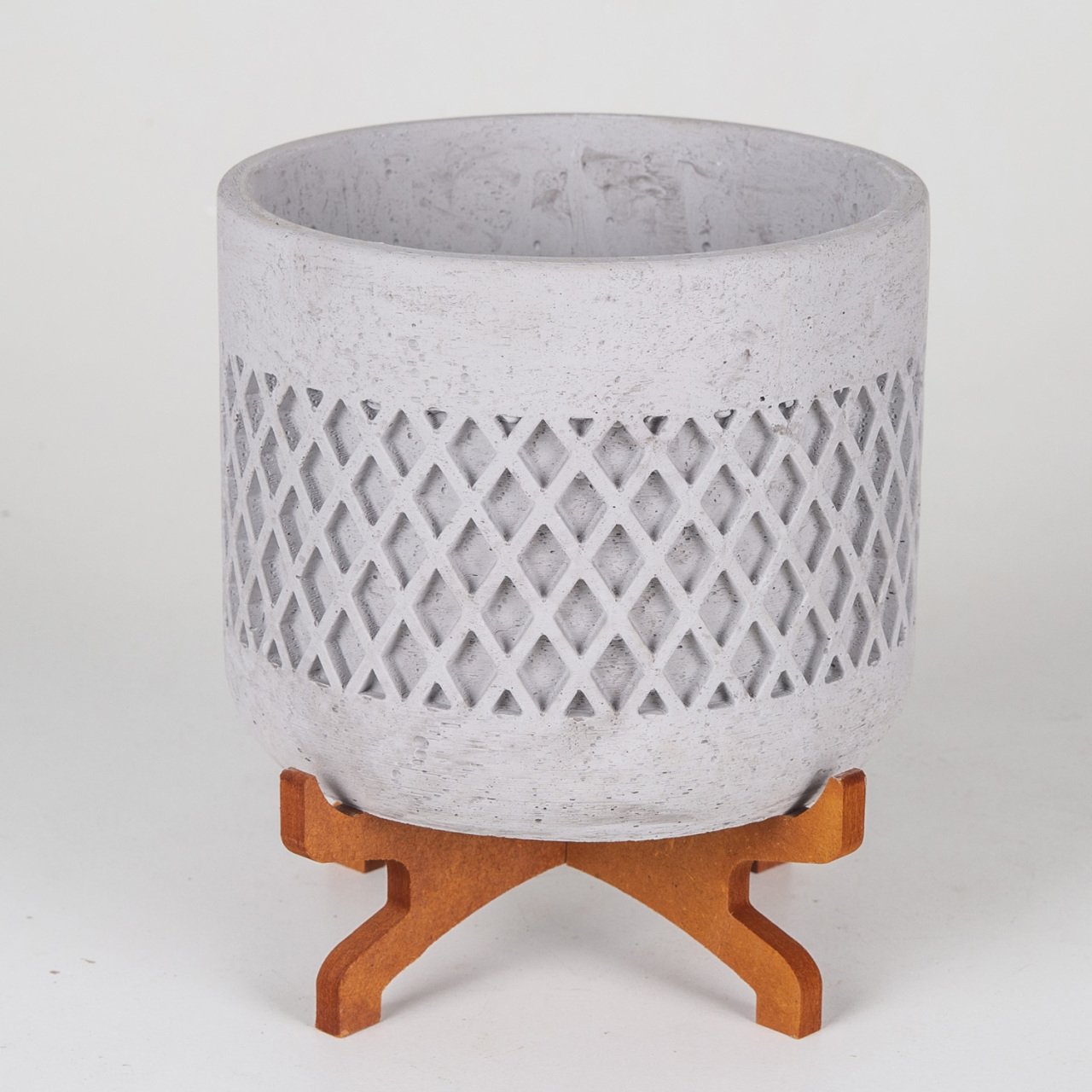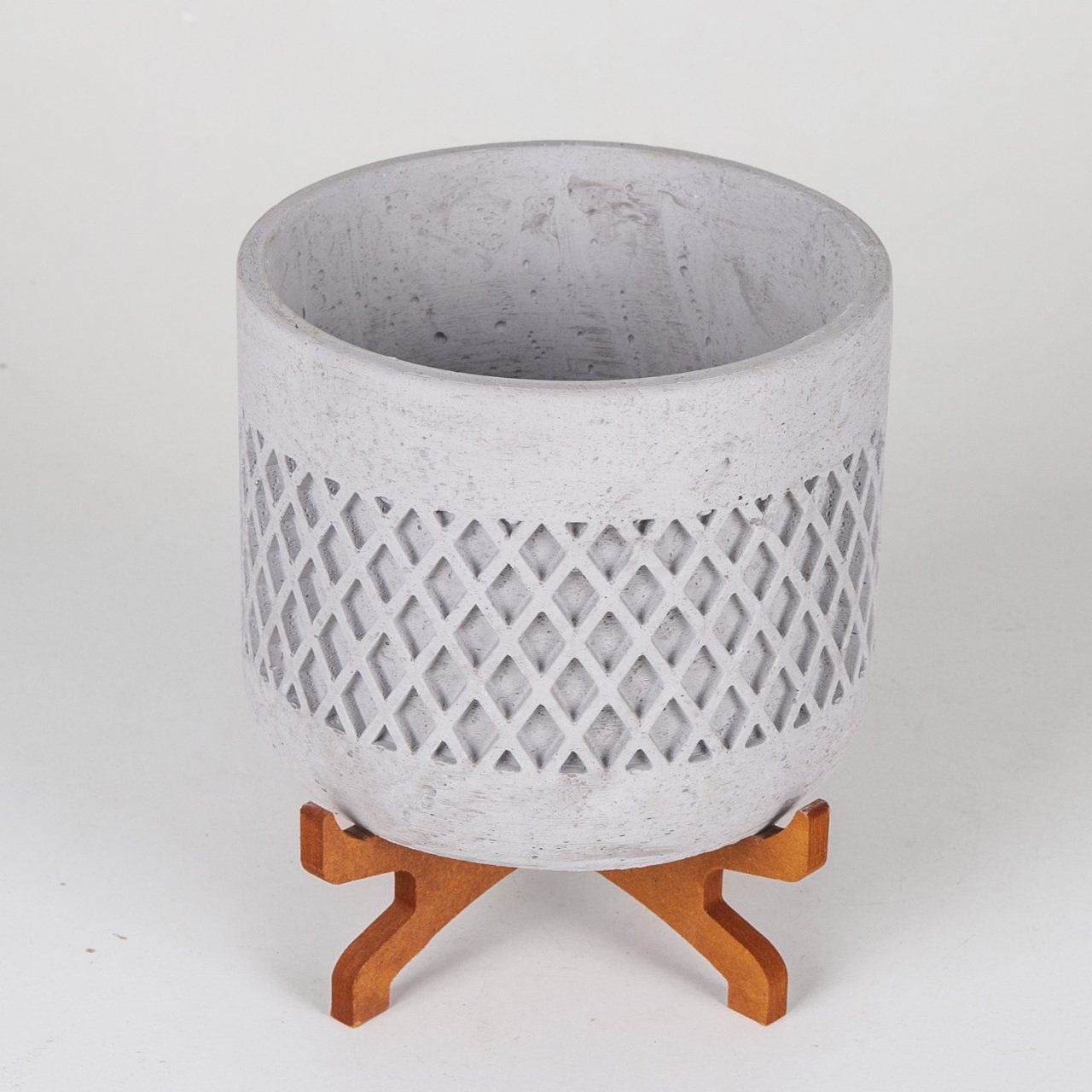 VeraMaya Ayaklı Büyük Boy Hasır Desen Gri Beton Saksı 18x21 Cm