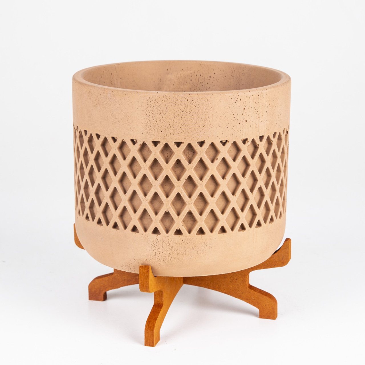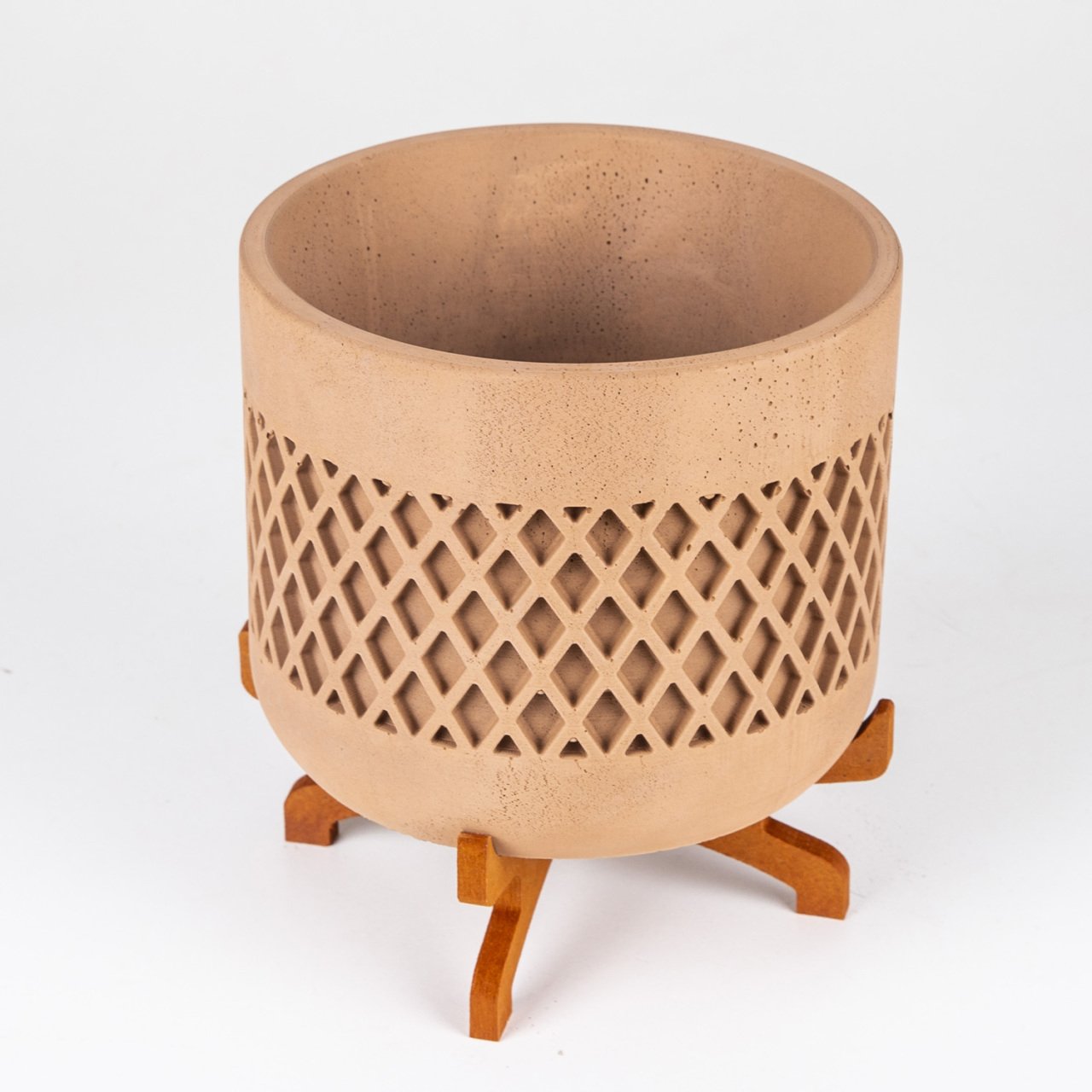 Veramaya Ayaklı Büyük Boy Hasır Desen Kahverengi Beton Saksı 18x21 Cm