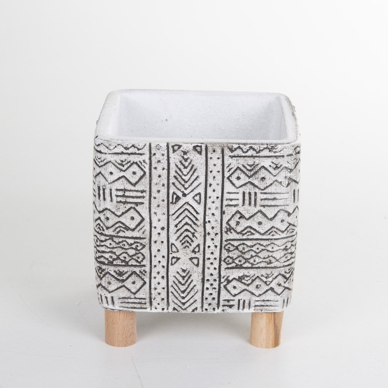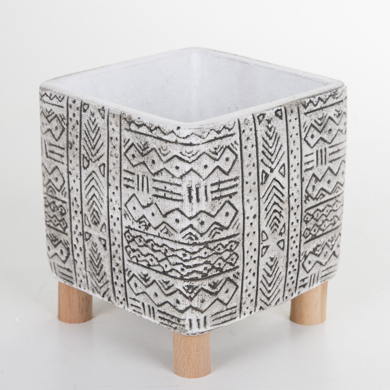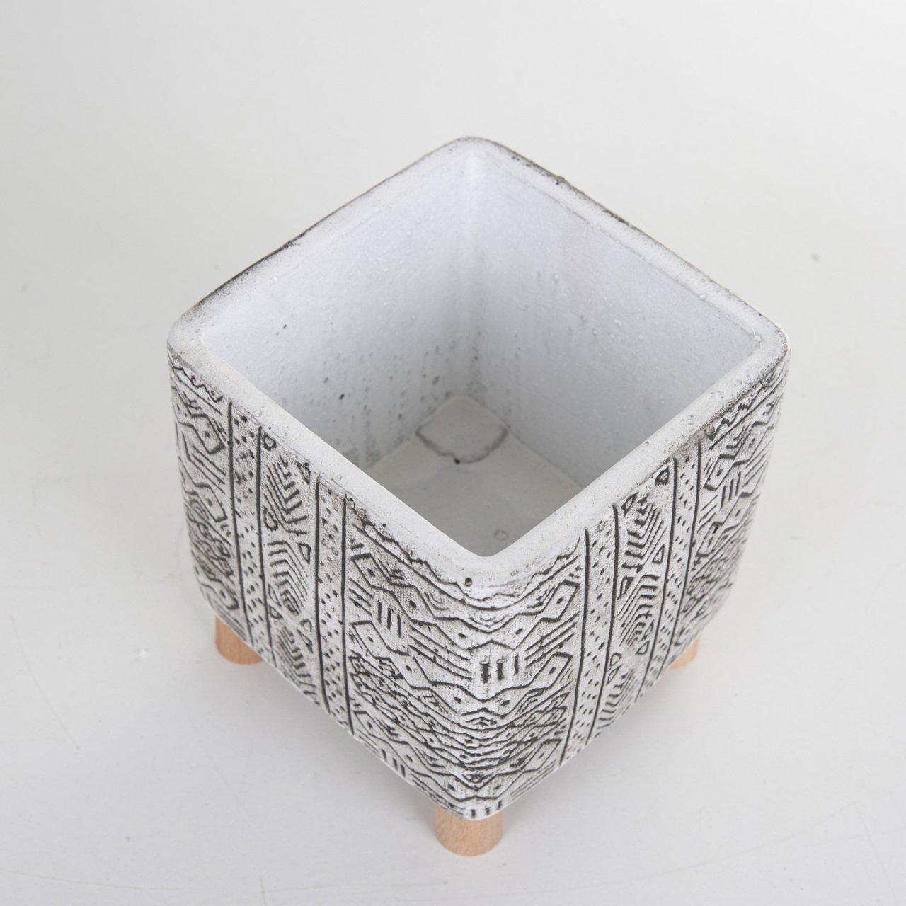Veramaya Ayaklı Etnik Desenli Eskitme Kare Beton Saksı 13x14 Cm