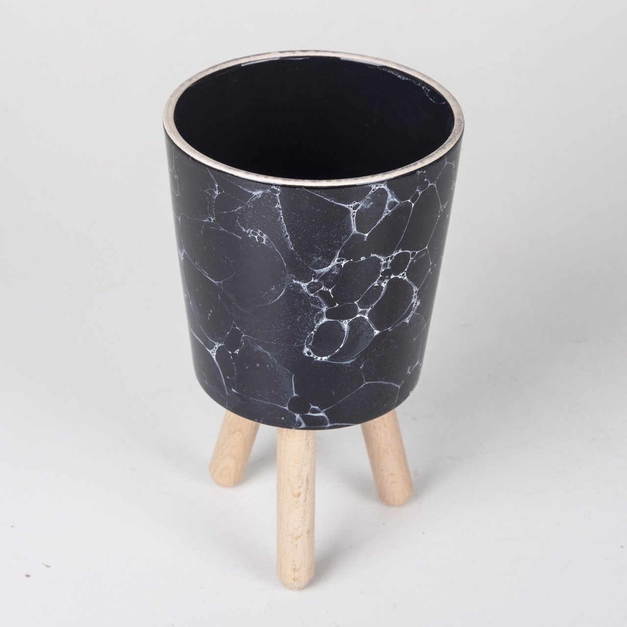 Veramaya Ayaklı Köpük Desen Orta Boy Siyah Seramik Saksı 13x22 Cm