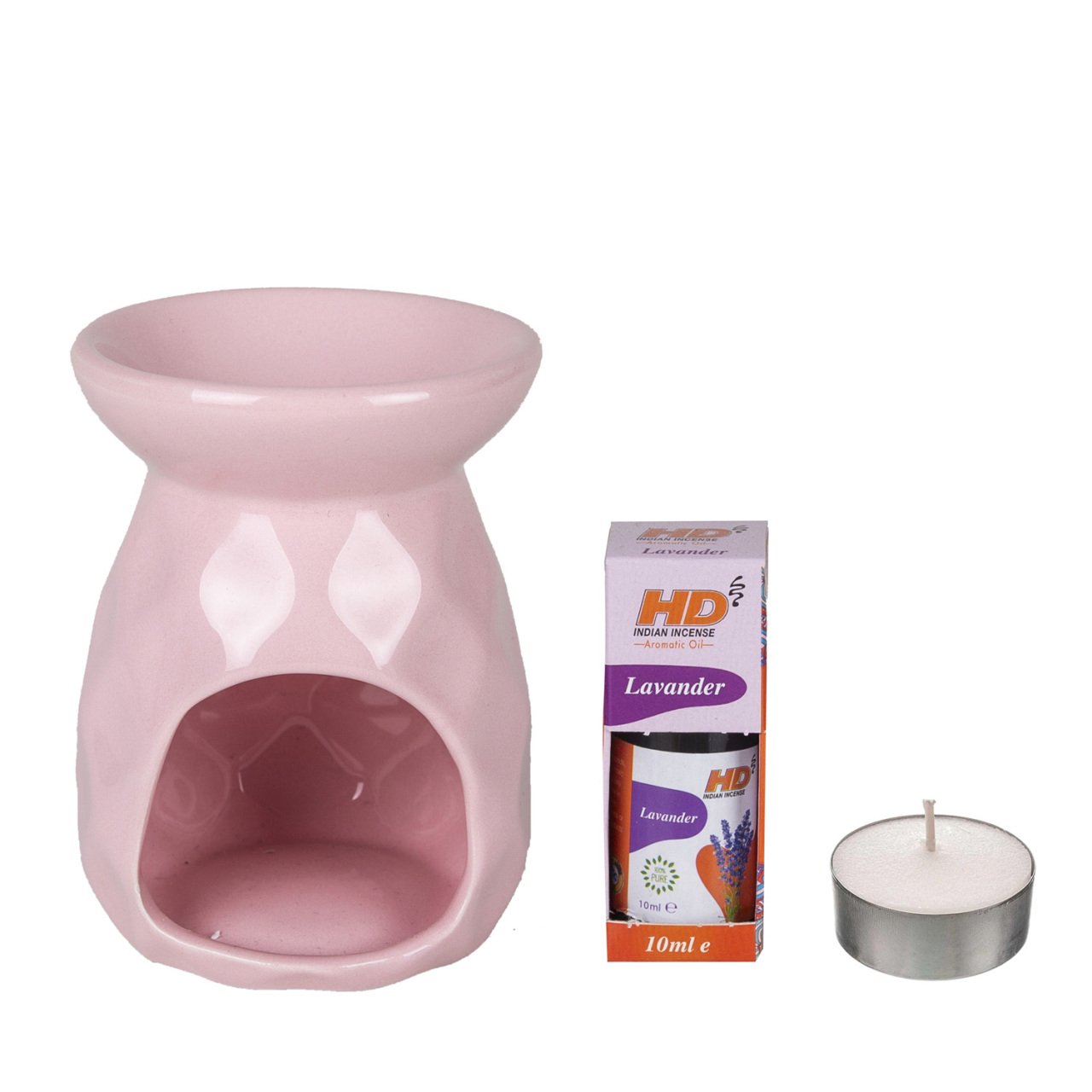 VeraMaya Buhurdanlık Yağ ve Mum Pembe Seramik Buhur Seti 9x12 Cm